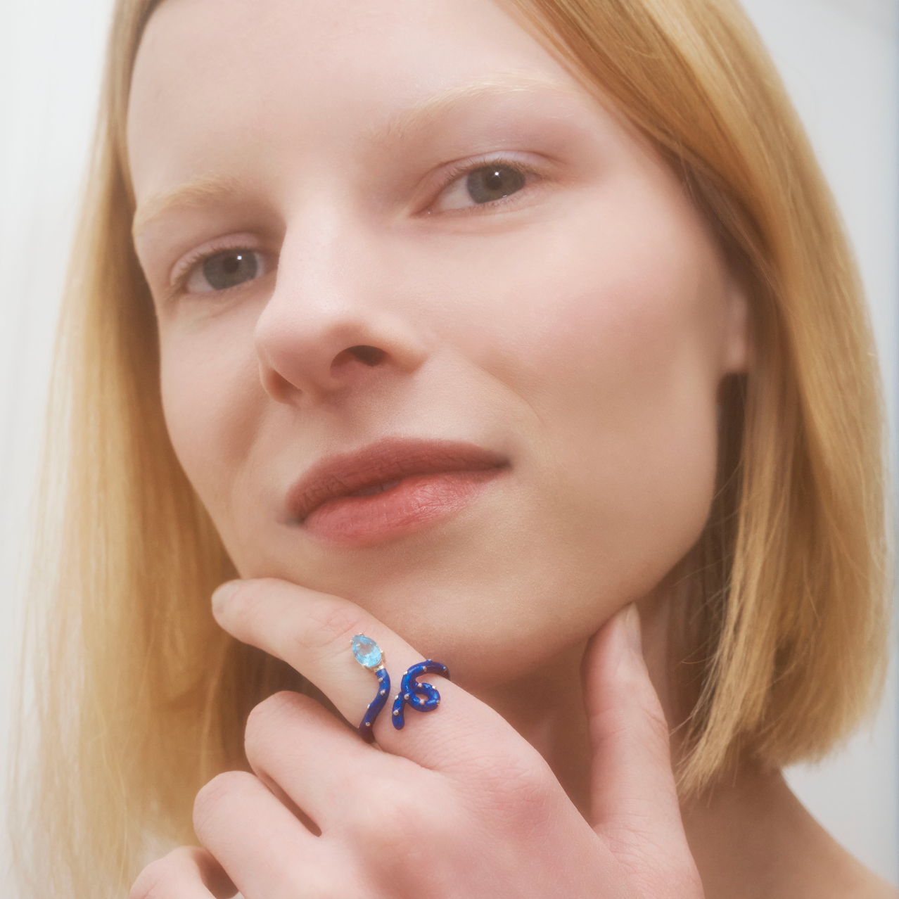STUDDED BABY VINE RING IN METALLIC NAVY