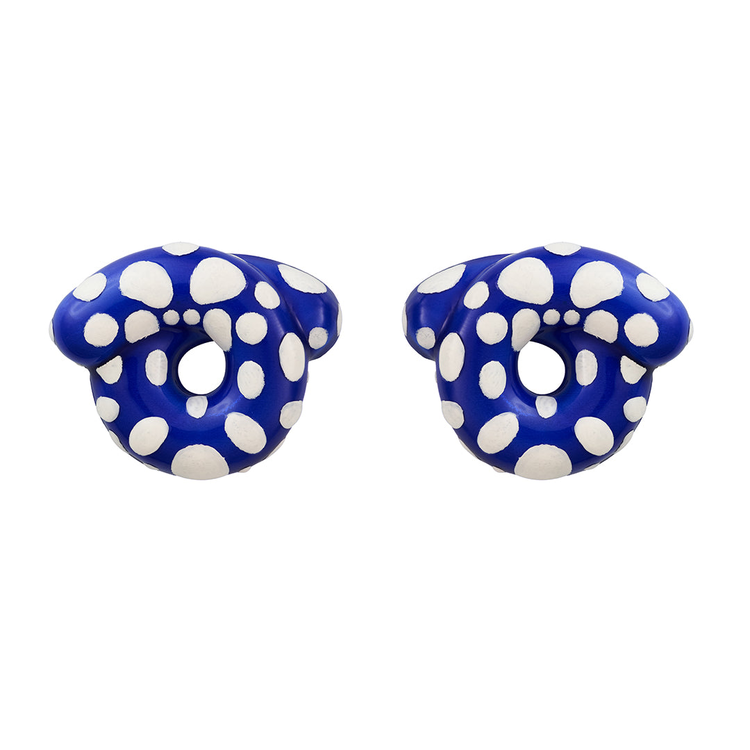 Tarallo earrings in silver, featuring hand-painted glossy deep blue enamel detailing inspired by the Diamond Stingray.
