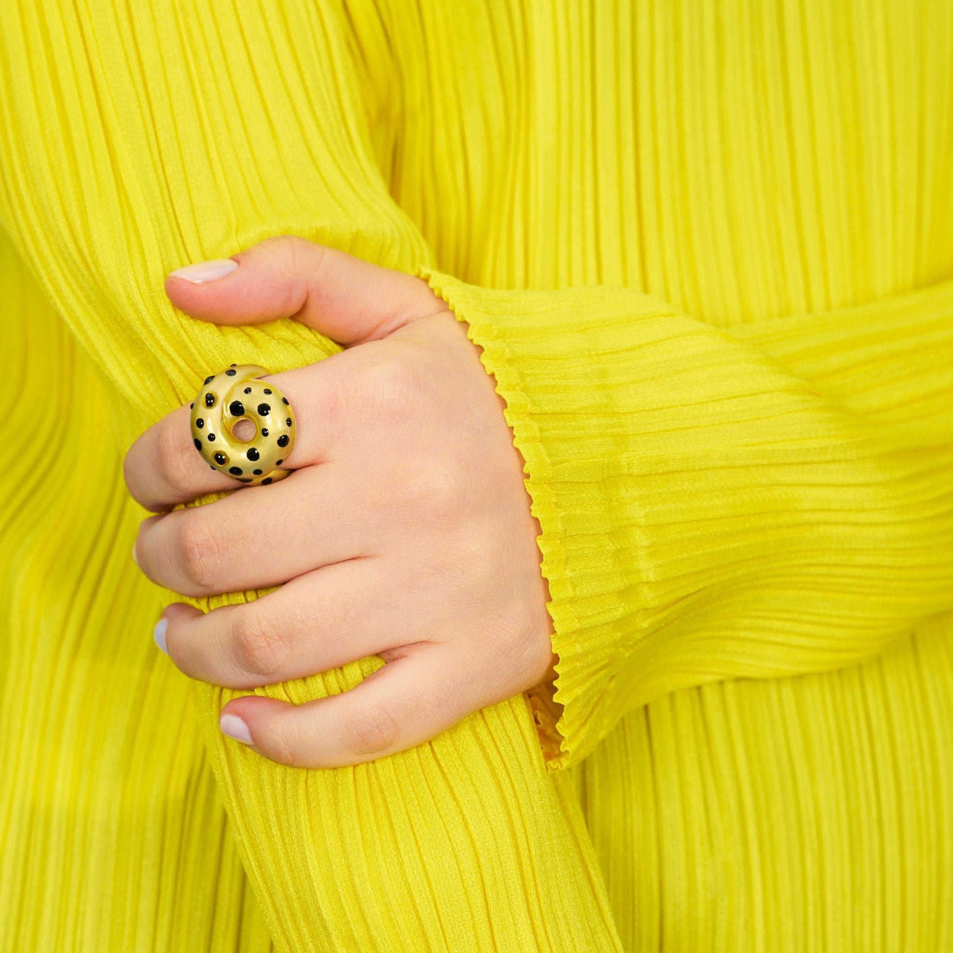 Tarallo ring in silver, featuring hand-painted glossy yellow enamel detailing inspired by the pattern of the Fish.