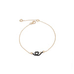 Baby heart diamond bracelet in gold featuring hand-painted black enamel and a round-cut diamond.