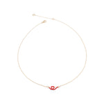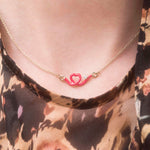 Baby heart diamond necklace in gold featuring hand-painted red enamel and a round-cut diamond.