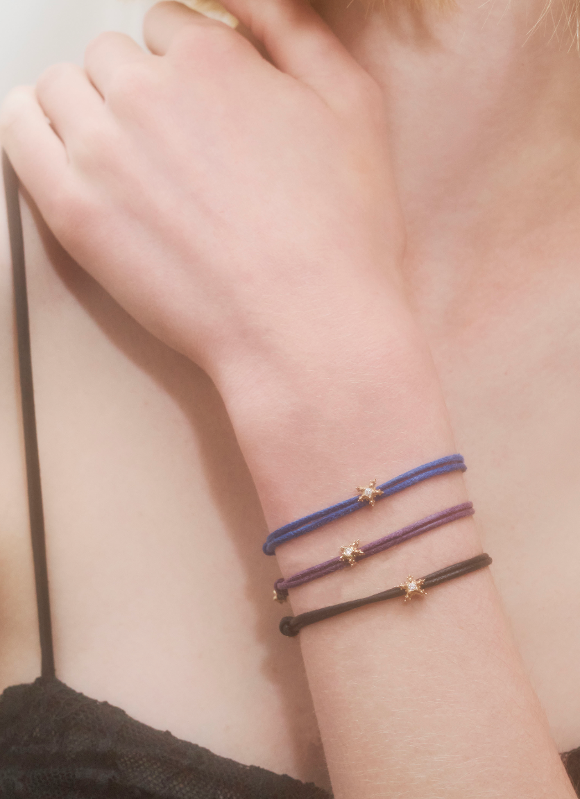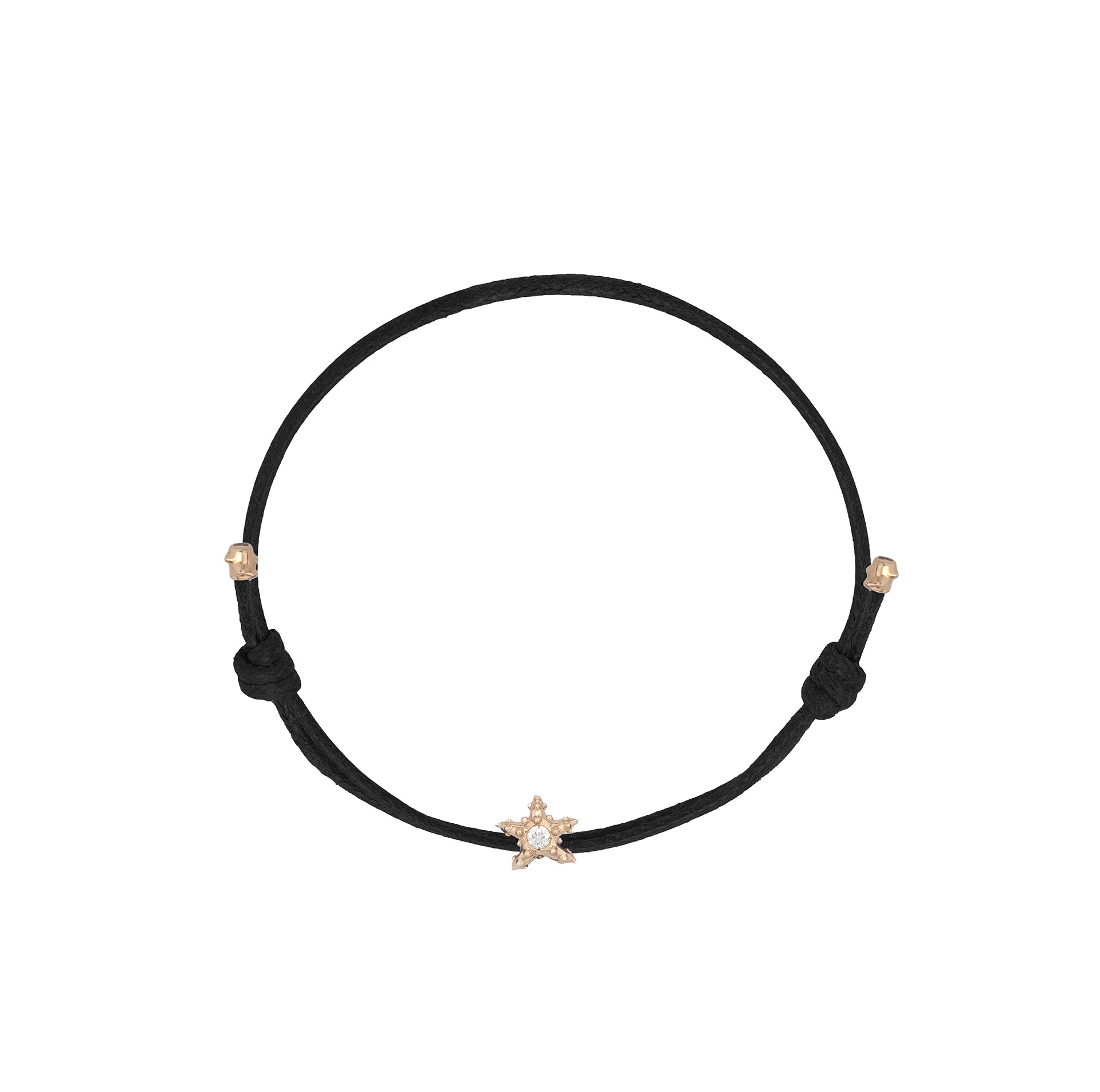 9kt Yellow Gold Starfish Charm bracelet with white brilliant cut diamond and Black adjustable cord.