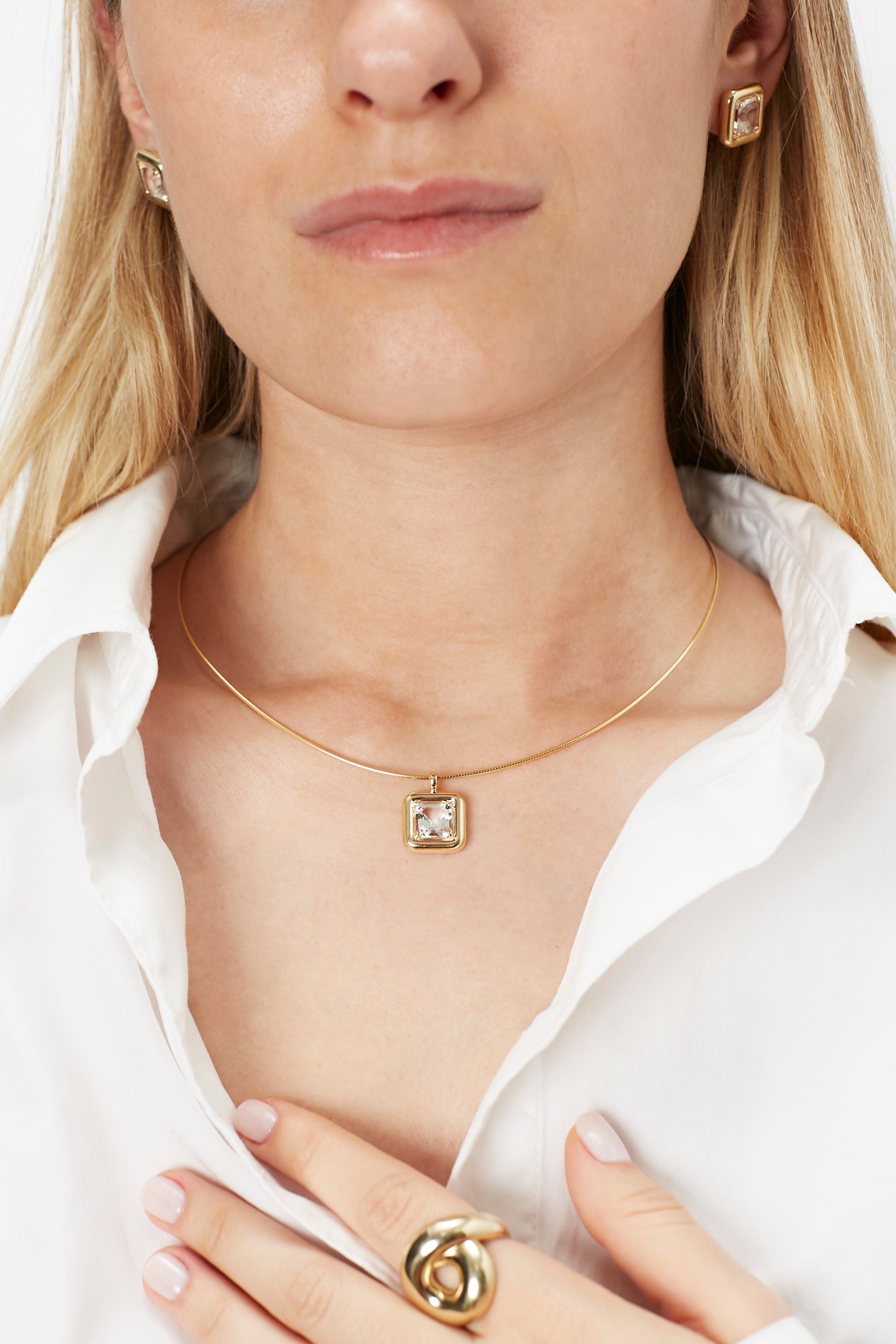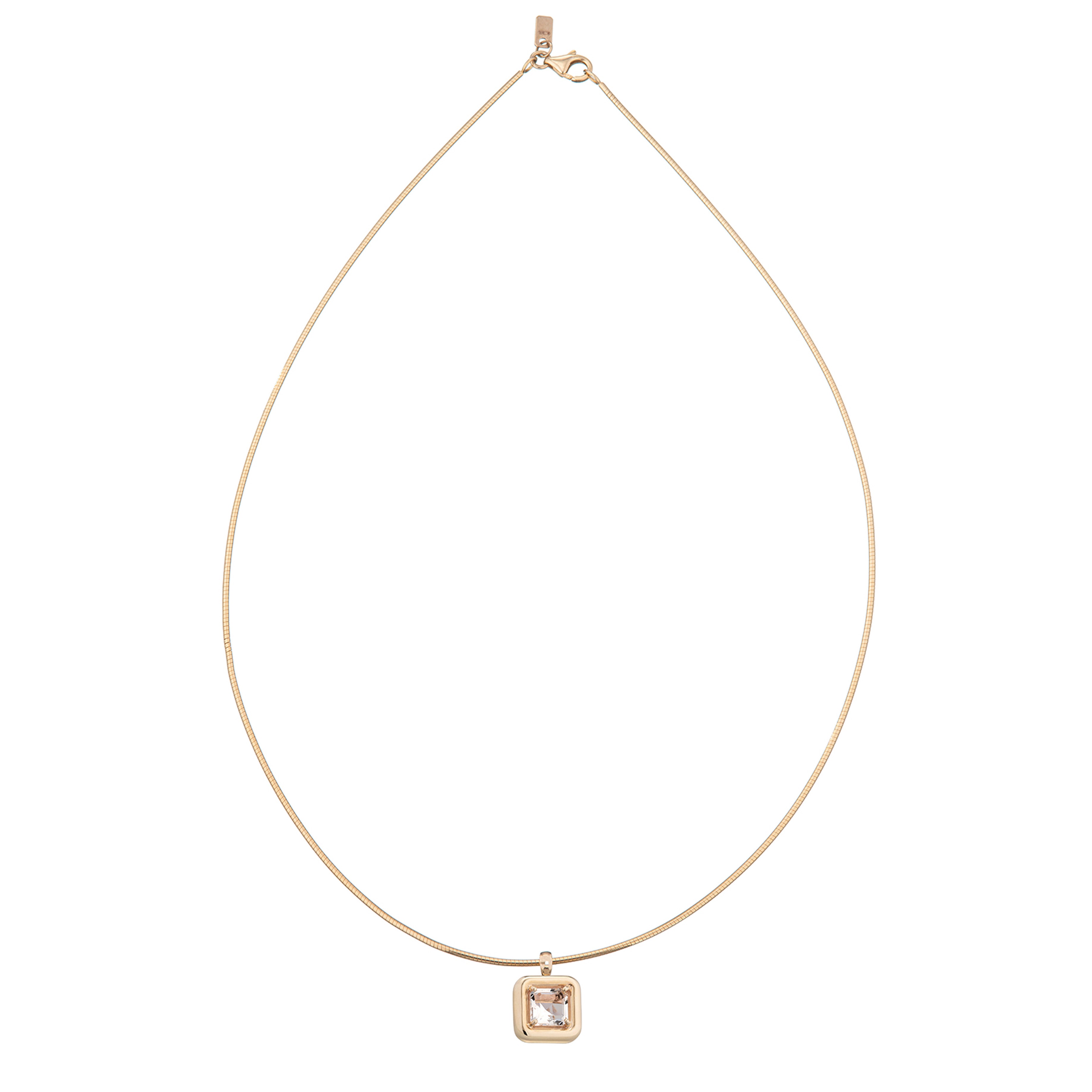 Gold necklace with a square pendant featuring a square-cut rock crystal.