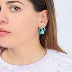 2 TONE FLOWER EARRINGS ~ IN MINT AND BLUE IRIS