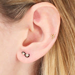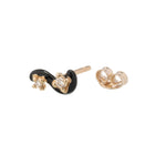 Mini loop single earring in yellow gold, featuring black enamel and round-cut diamonds.