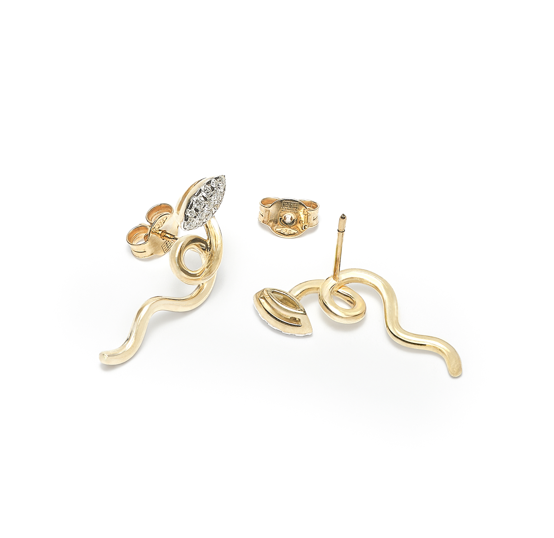 Vine Pavè Earrings in 9kt yellow gold with marquise cut pavè diamonds.
