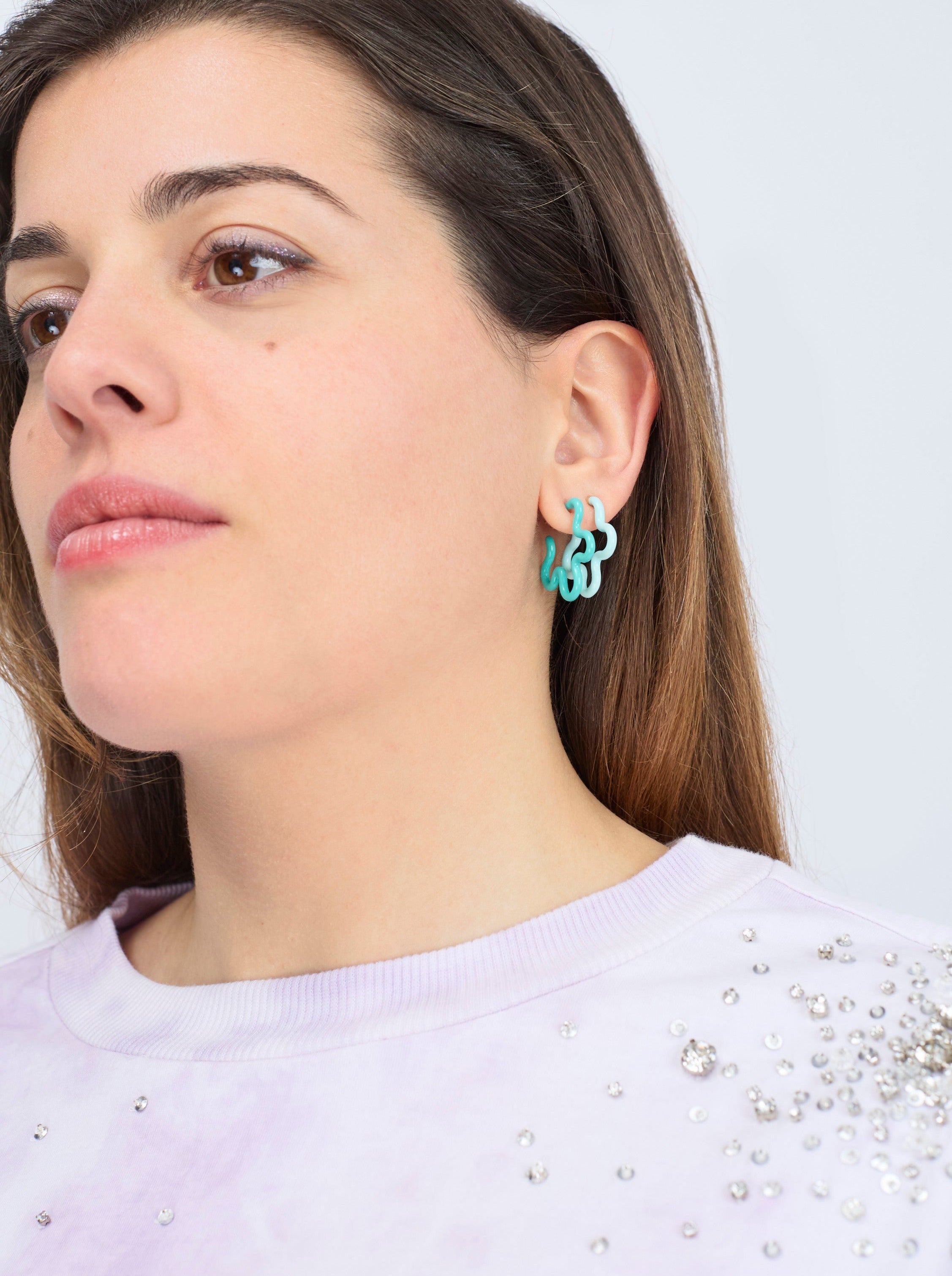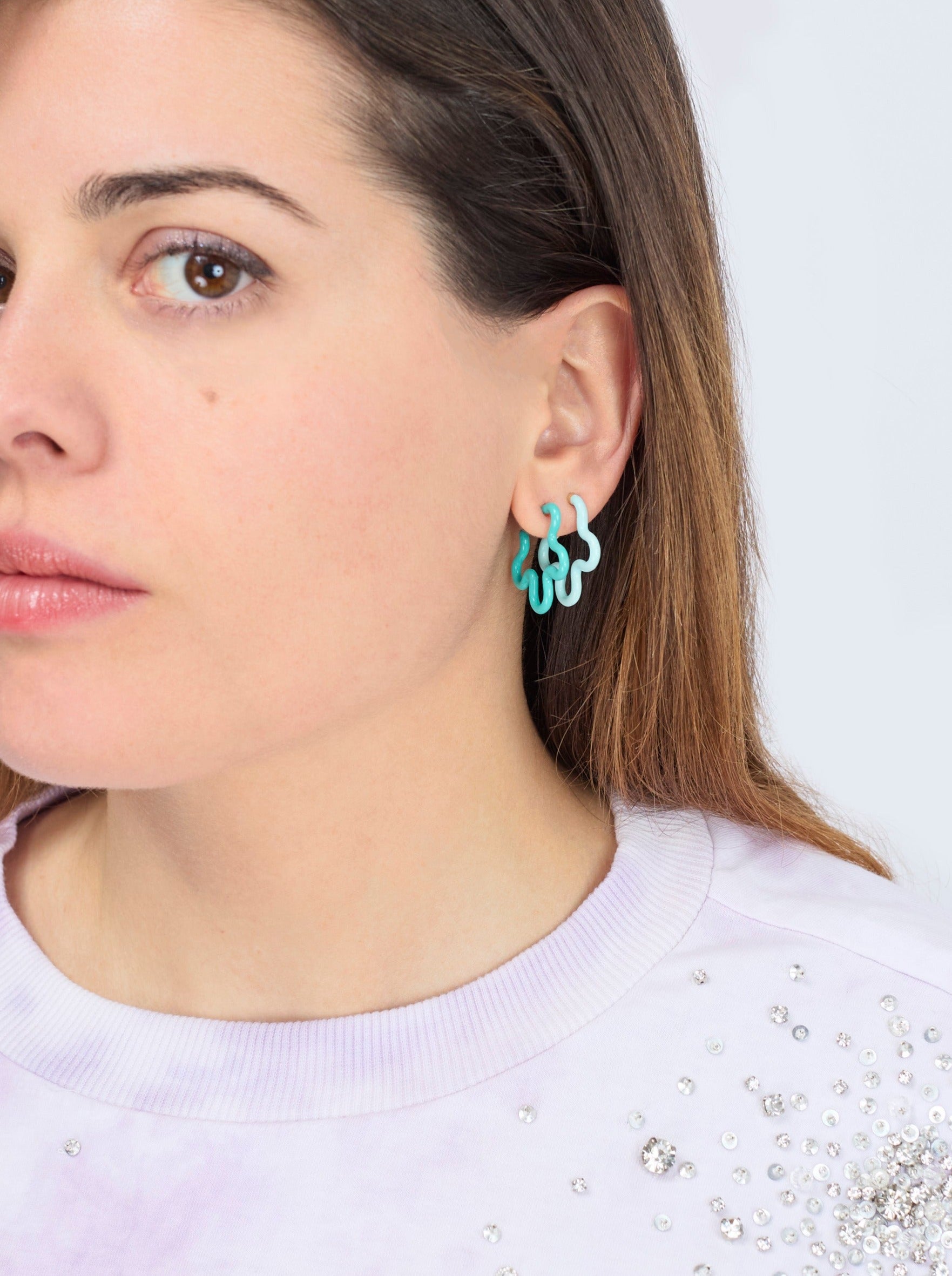 2 TONE FLOWER EARRINGS ~ IN MINT AND BLUE IRIS