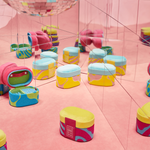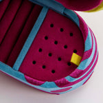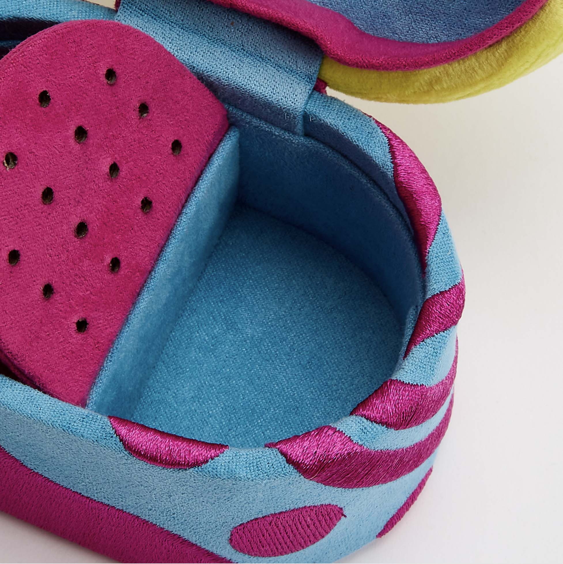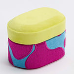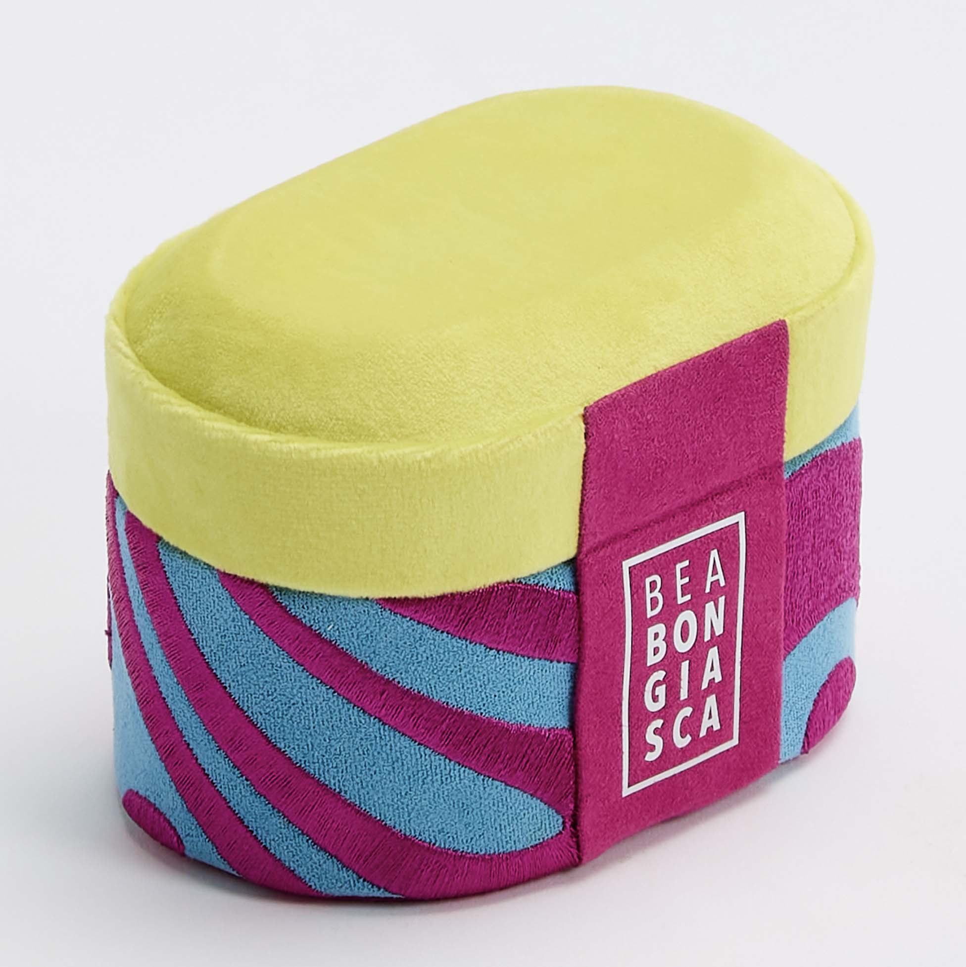 Inspired by the seventies swagger, this Small Box in Microsuede is made in Yellow and Turquoise Microfiber with Embroidered Purple patterns.