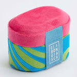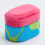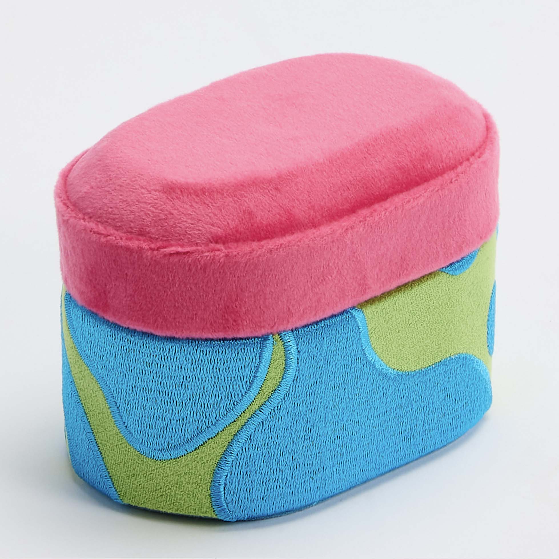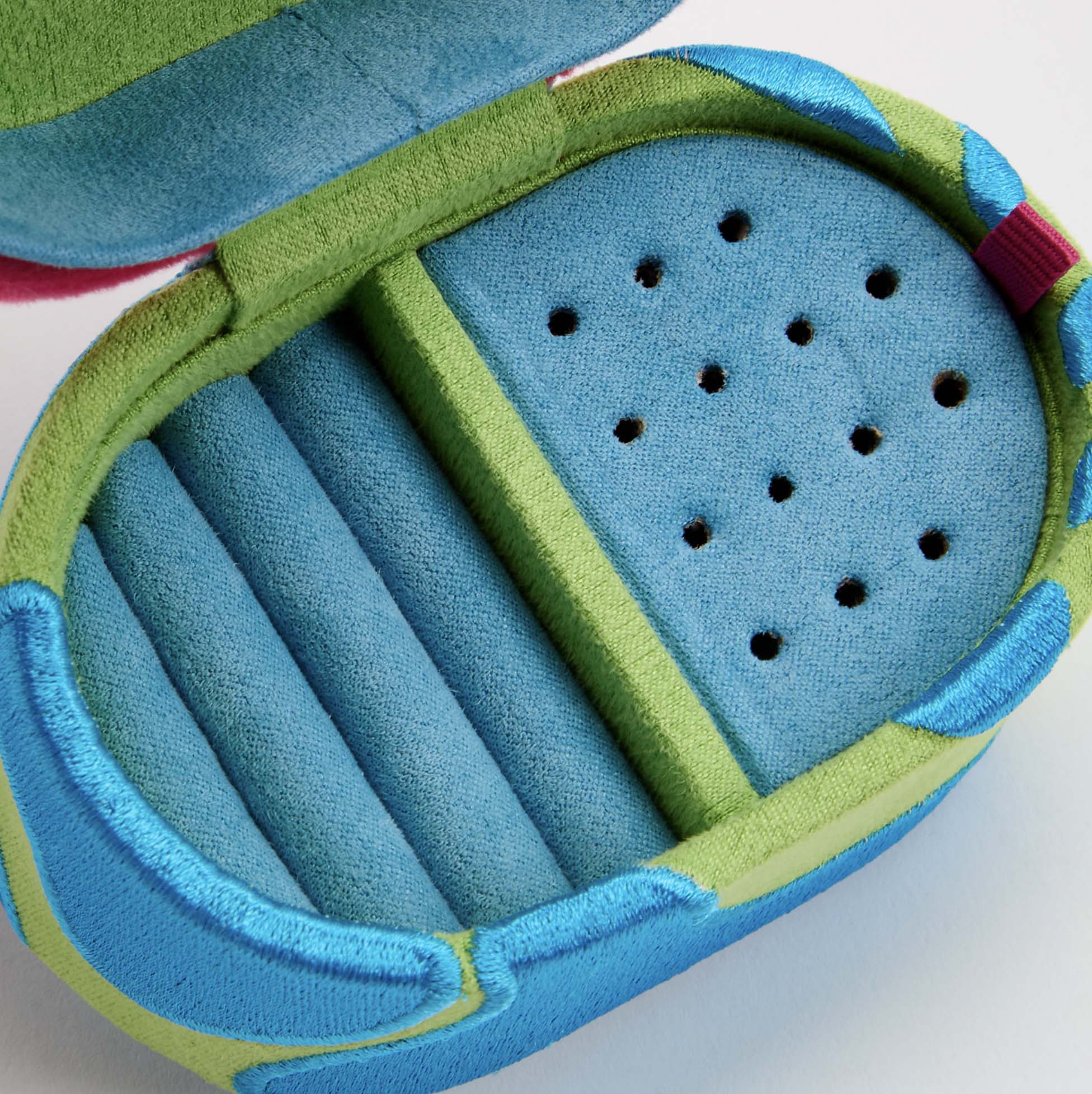 Inspired by the seventies swagger, this Small Box in Microsuede is made in Pink and Green Microfiber with Embroidered Turquoise patterns.