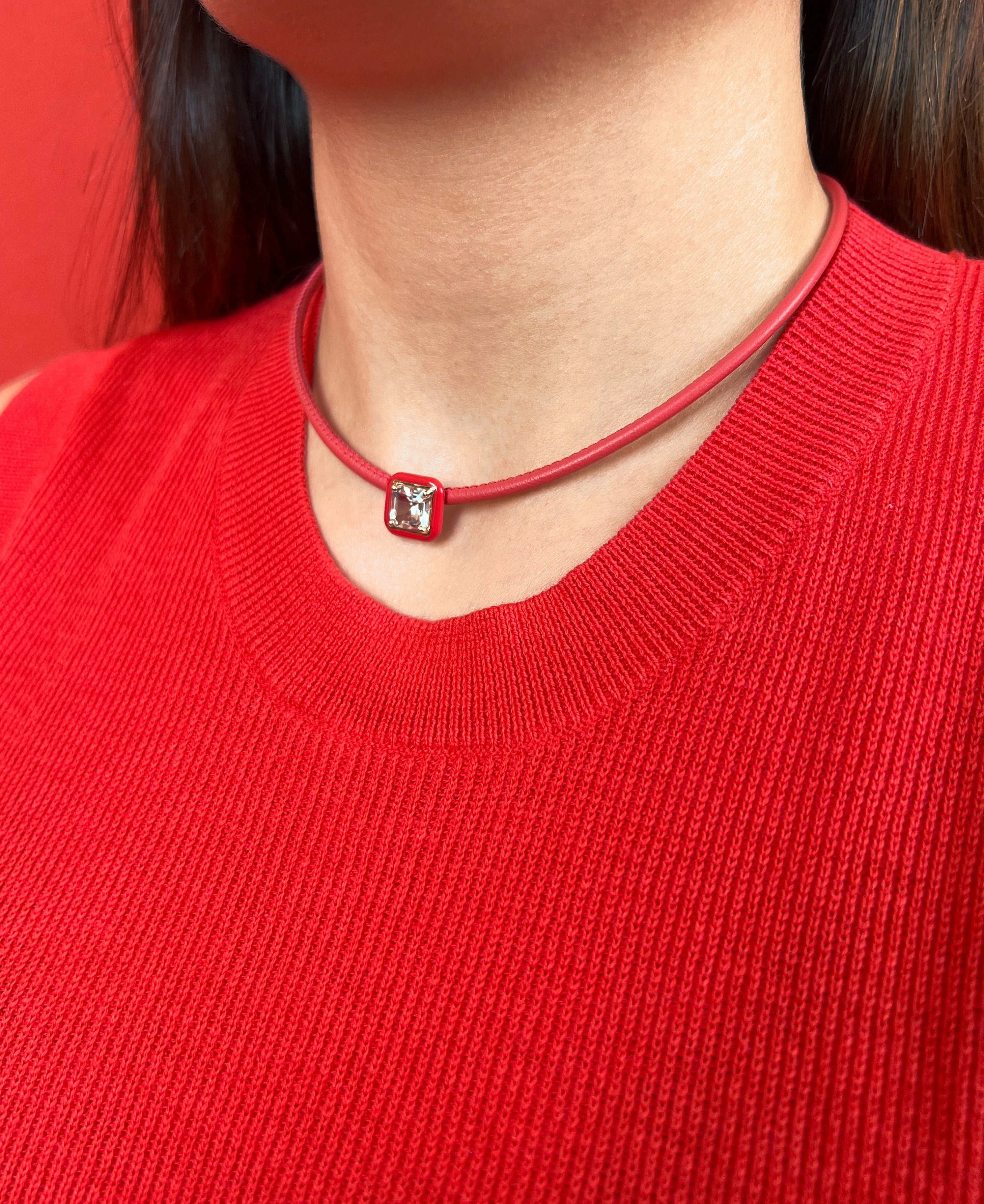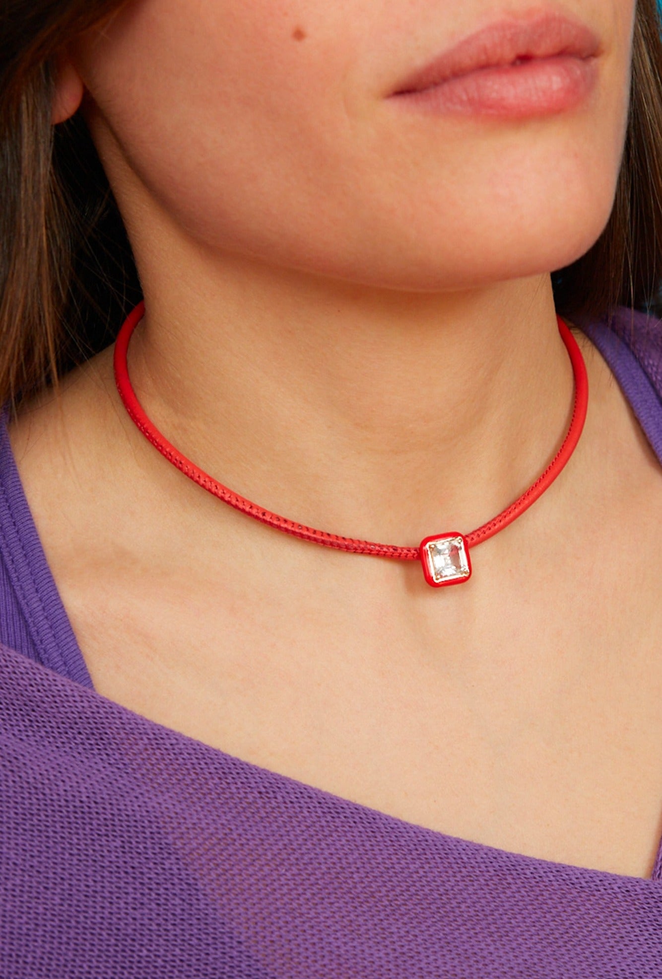 POP CHOKER ~ WITH SQUARE IN CANDY SETTING IN RED