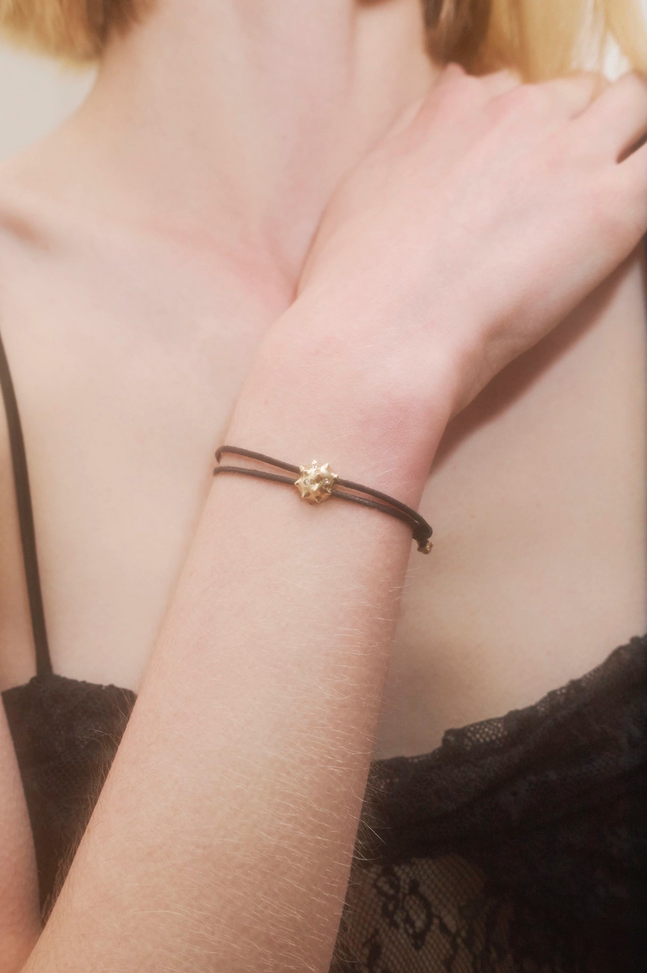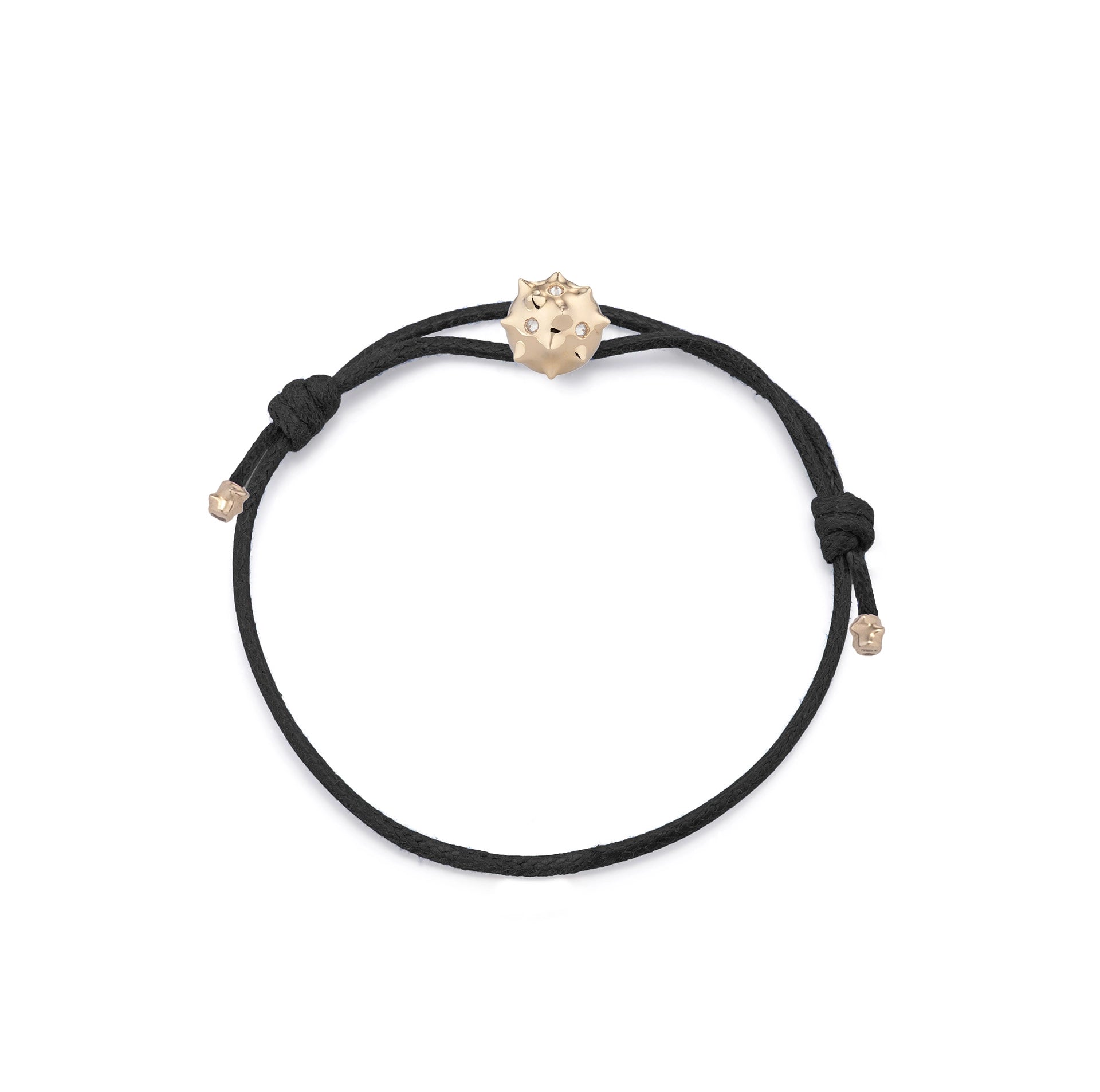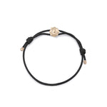 Gold Riccio Bracelet in 9kt Yellow Gold and brillian cut white diamonds with Black adjustable cord
