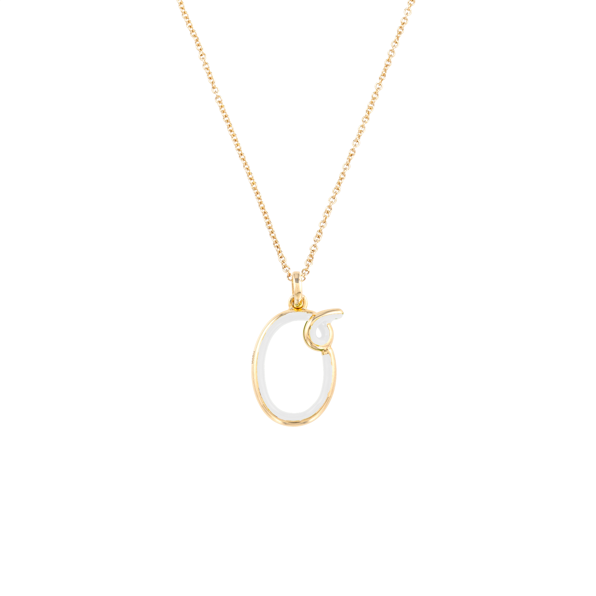 O Letter Necklace in 9kt yellow gold with white enamel.