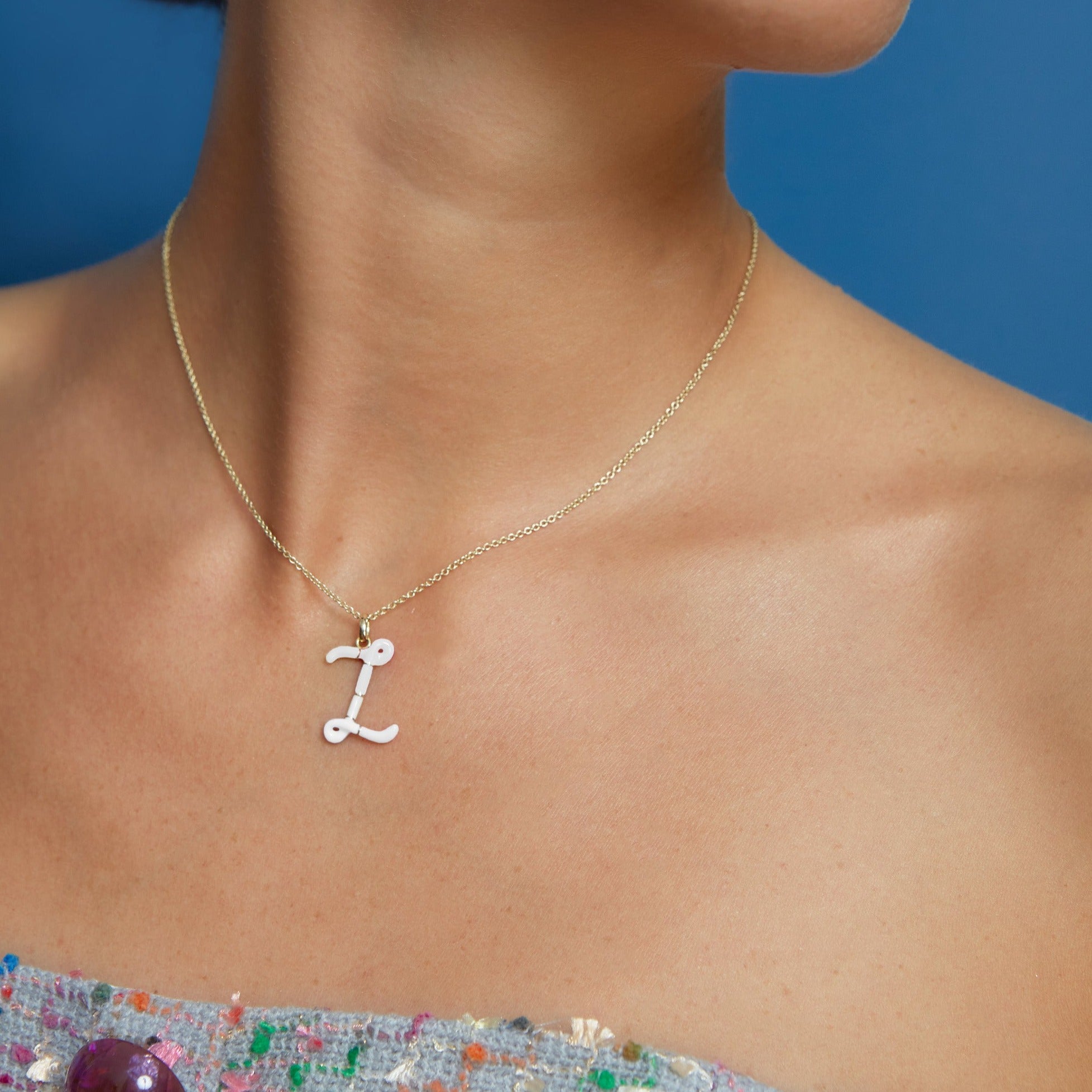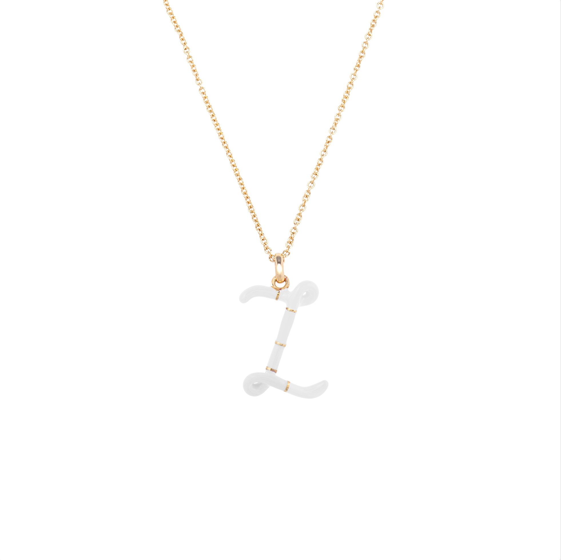 Z Letter Necklace in 9kt yellow gold with white enamel.