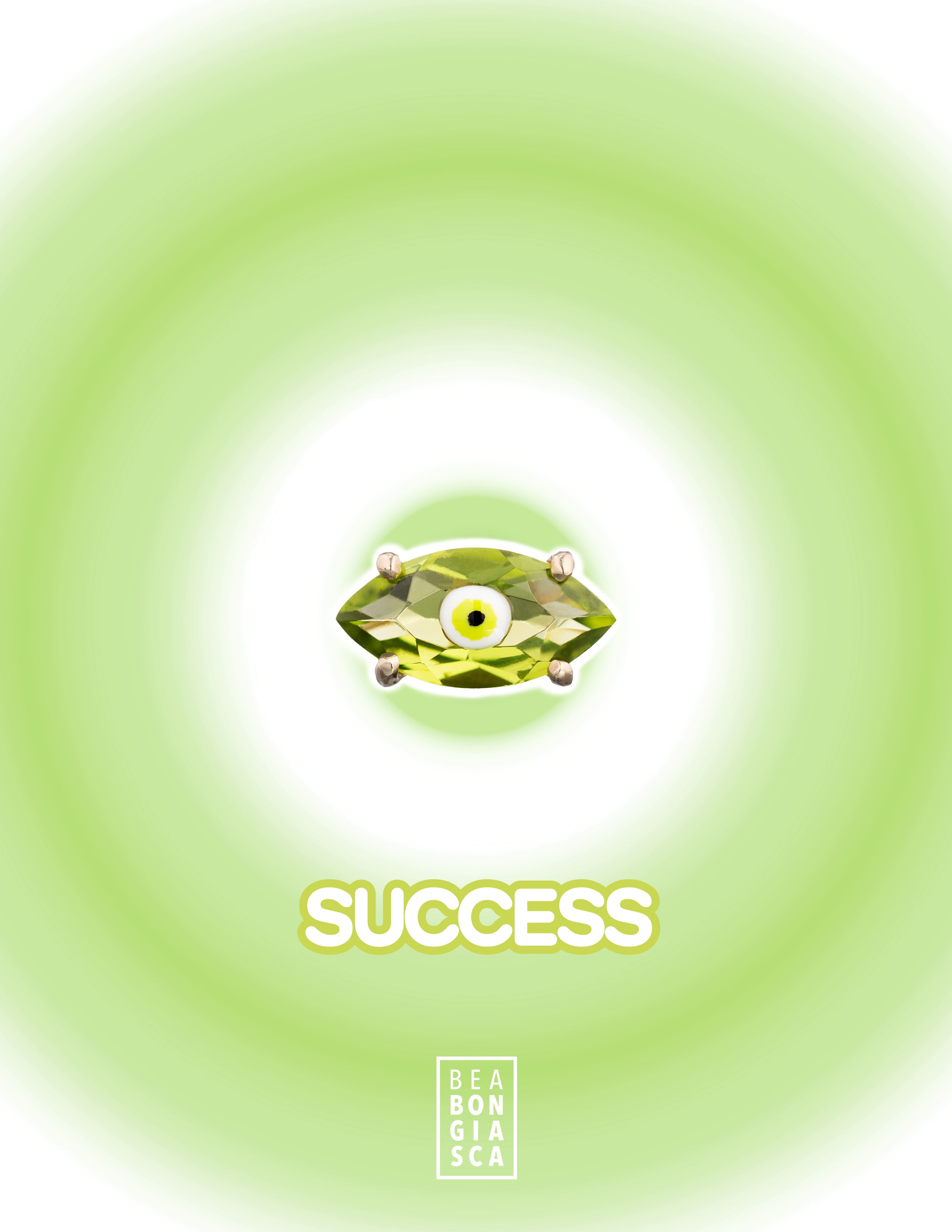 Drawing inspiration from the iconic symbolism of the Evil Eye, cherished across diverse cultures since ancient times, this Fortuneye ring features a marquise-cut peridot with an innovative hand-painted eye directly onto the gemstone in hues of lime green, black, and white enamel. Wear this auspicious green amulet to promote success.
