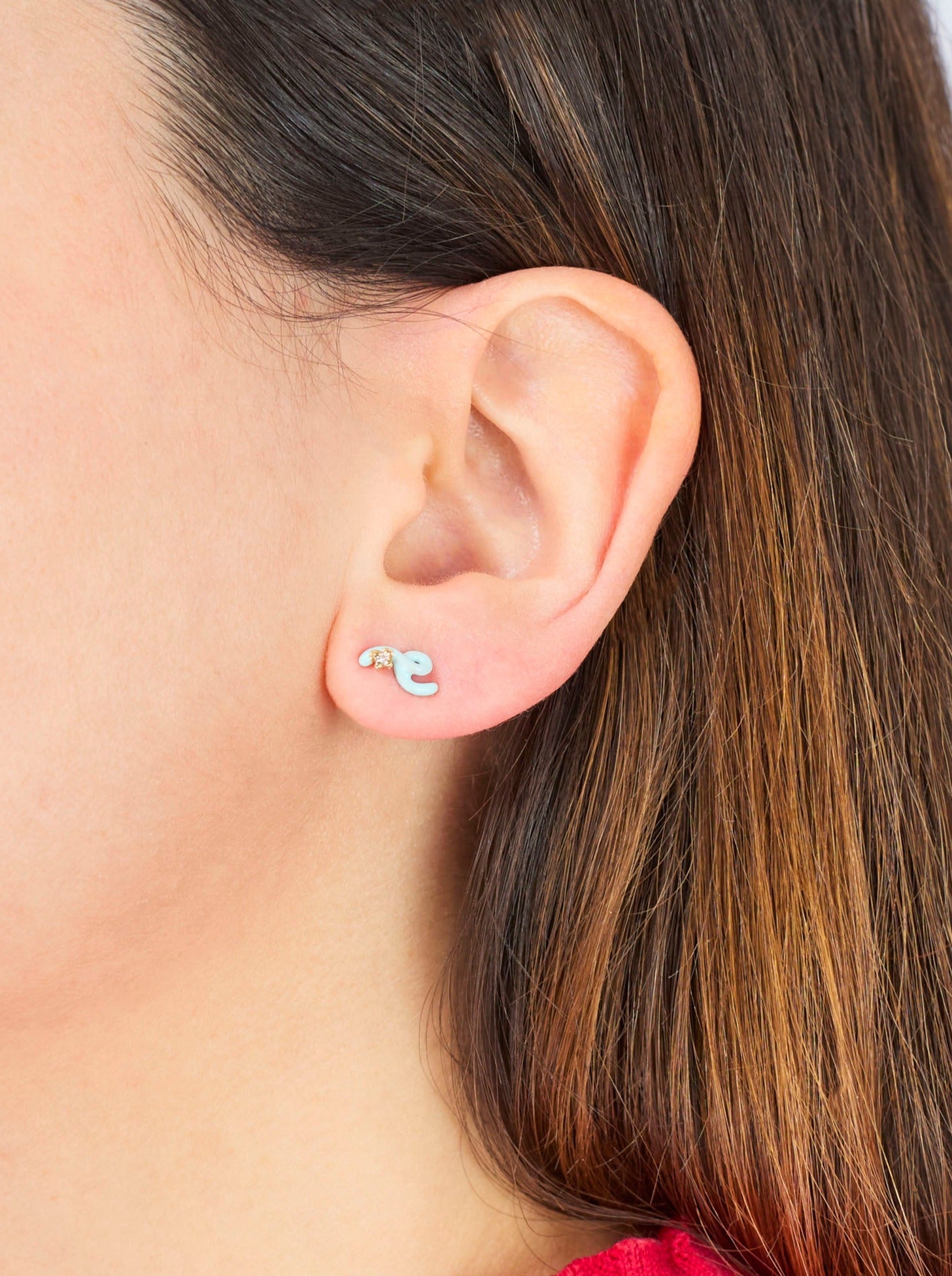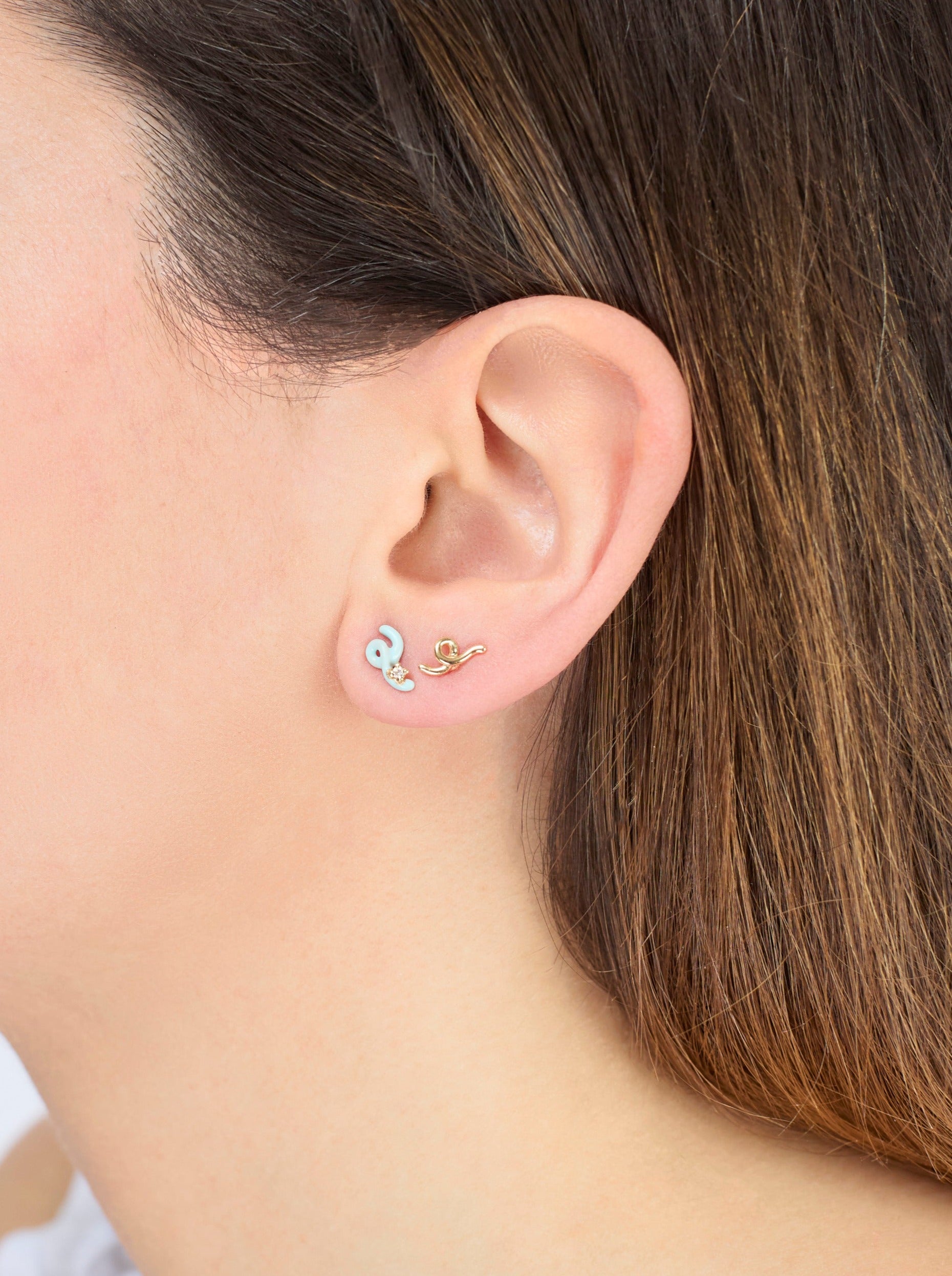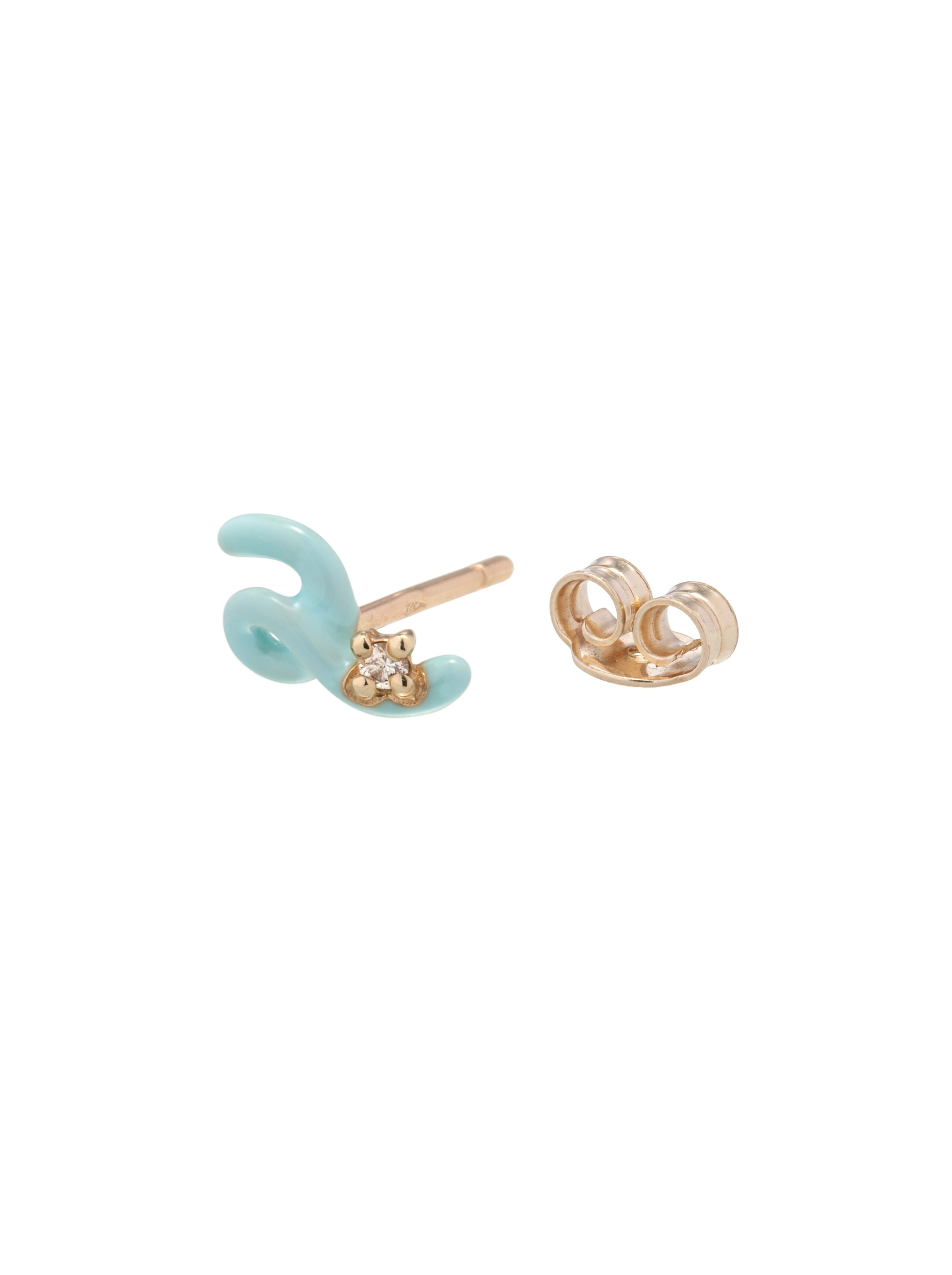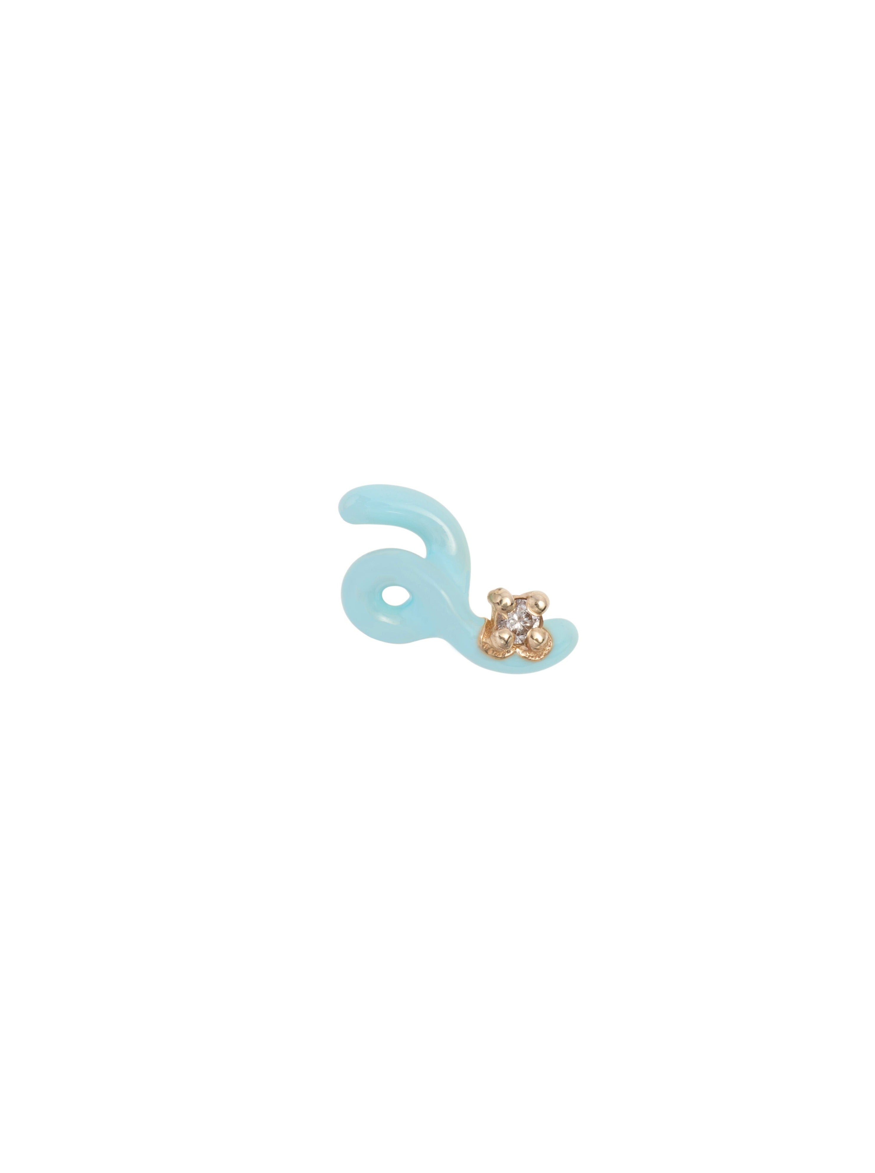 Crafted by hand in yellow 9kt gold, this Mini Loop earring features the new blue iris enamel and sparkling white diamond for a delicate, yet pop, touch to your ear game. The earring is 1cm (0.39 inches) in length and 0.6cm (0.23 inches in height).