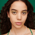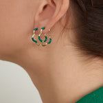 B MINI GOLD AND EMERALD GREEN EARRINGS