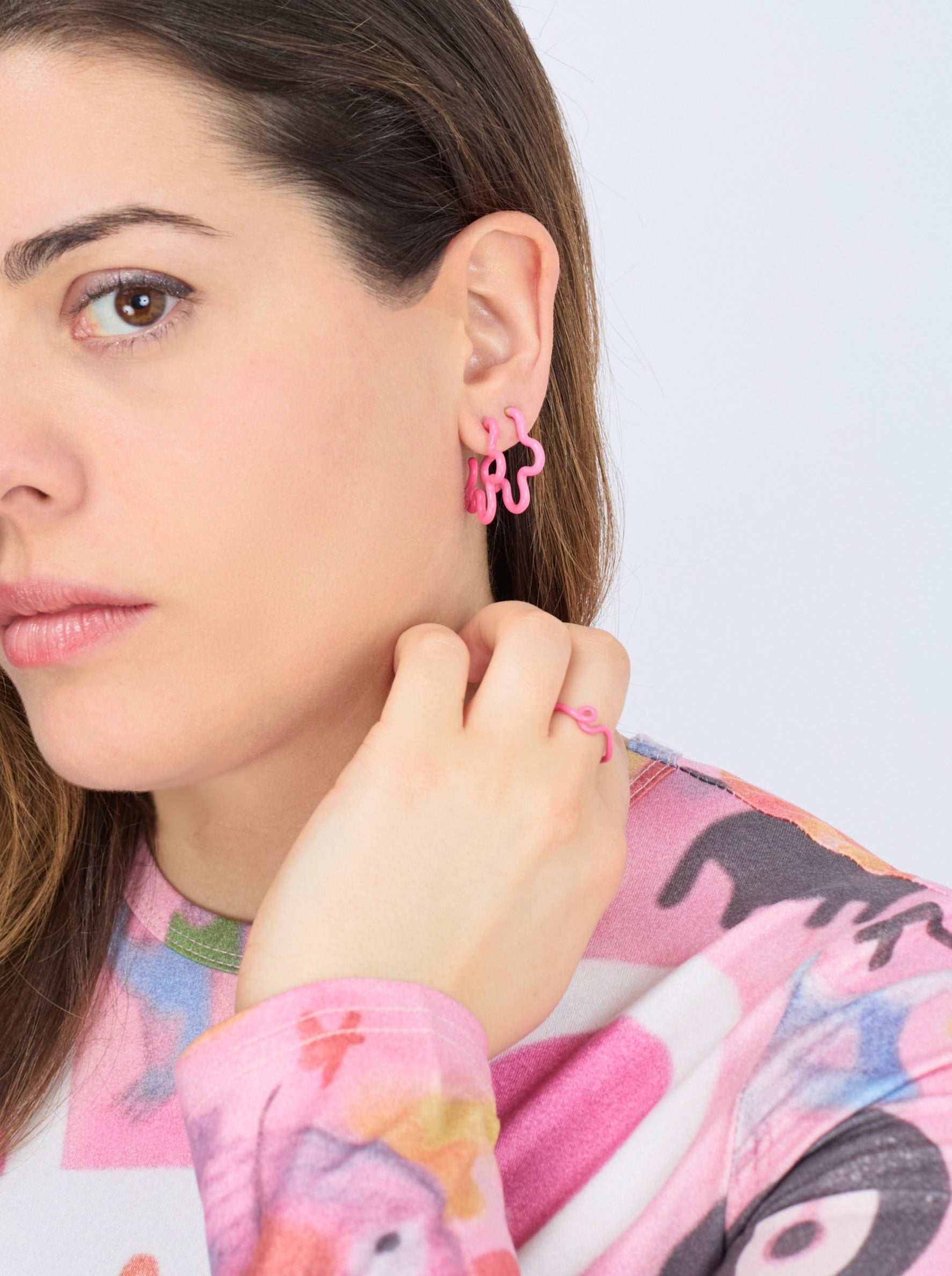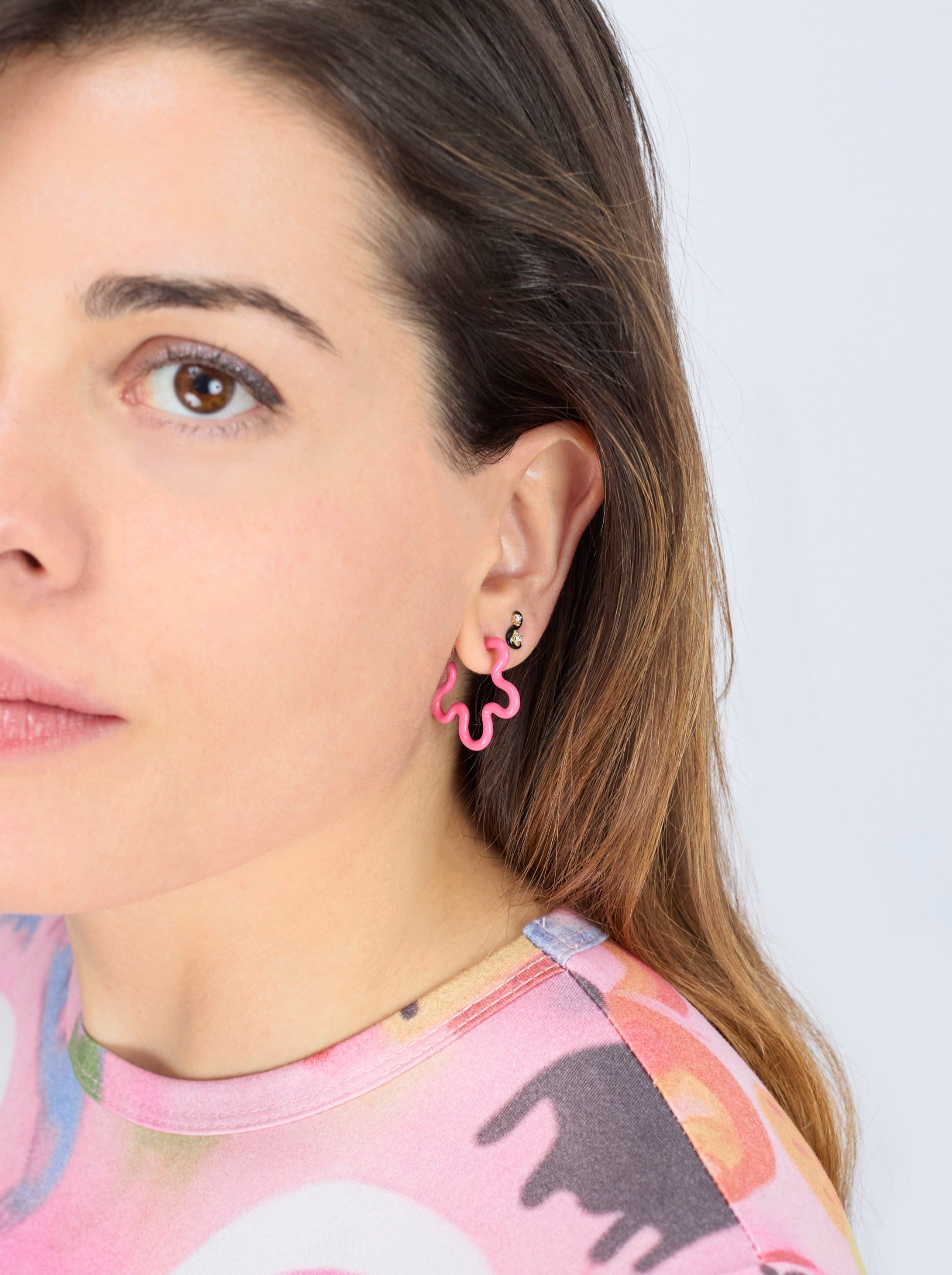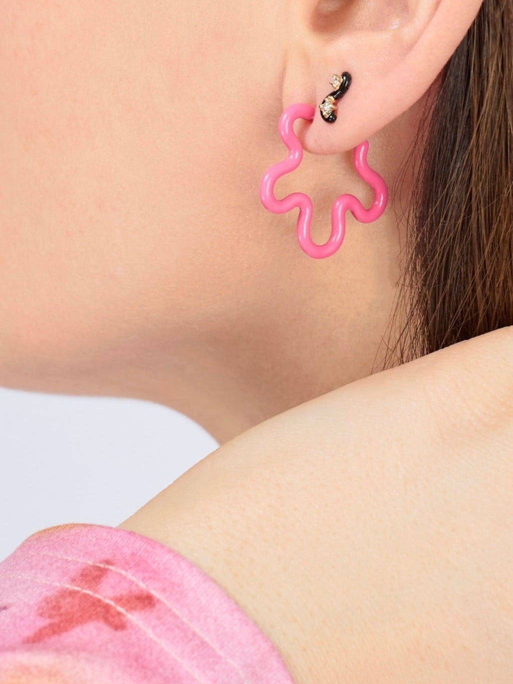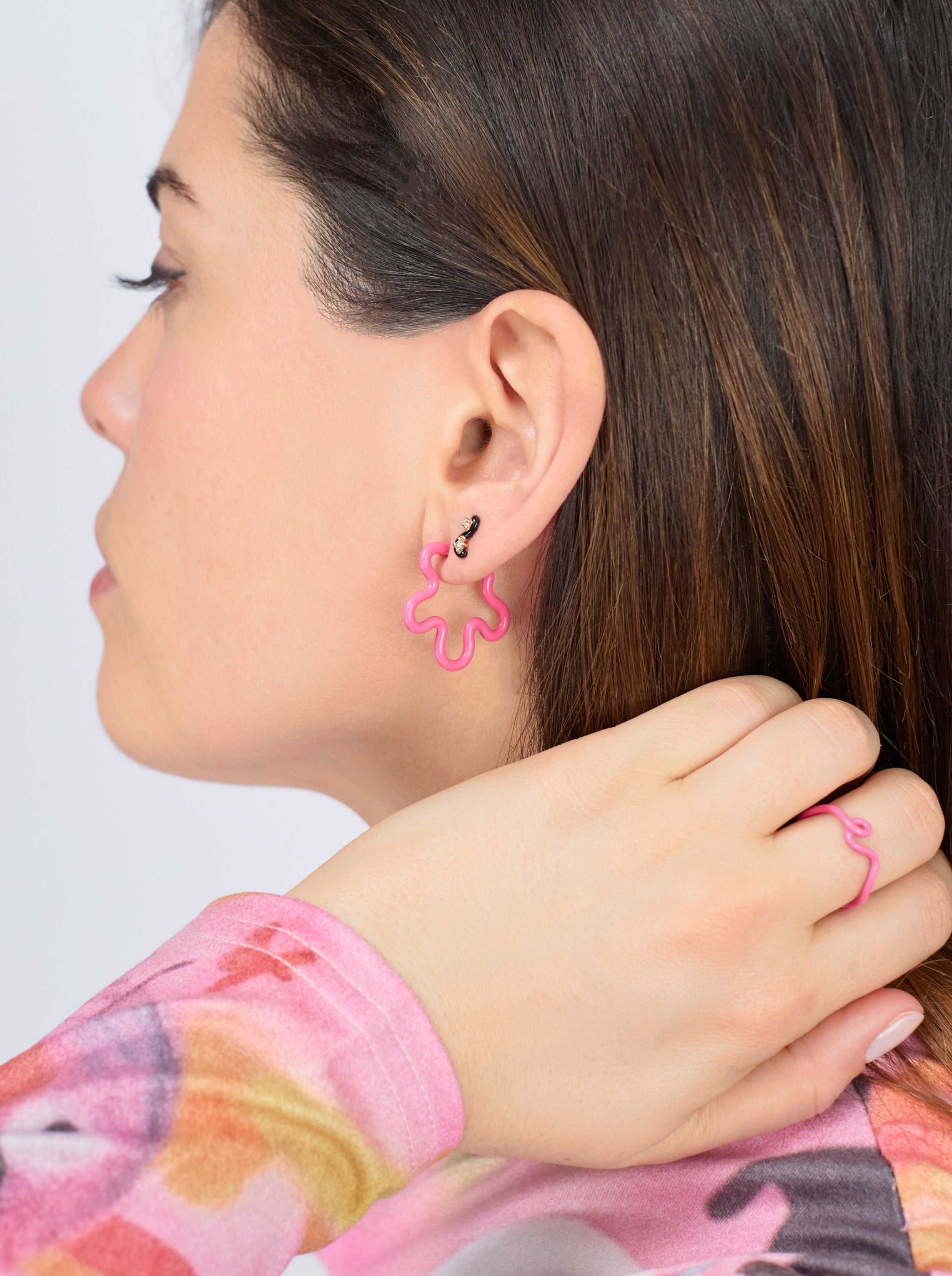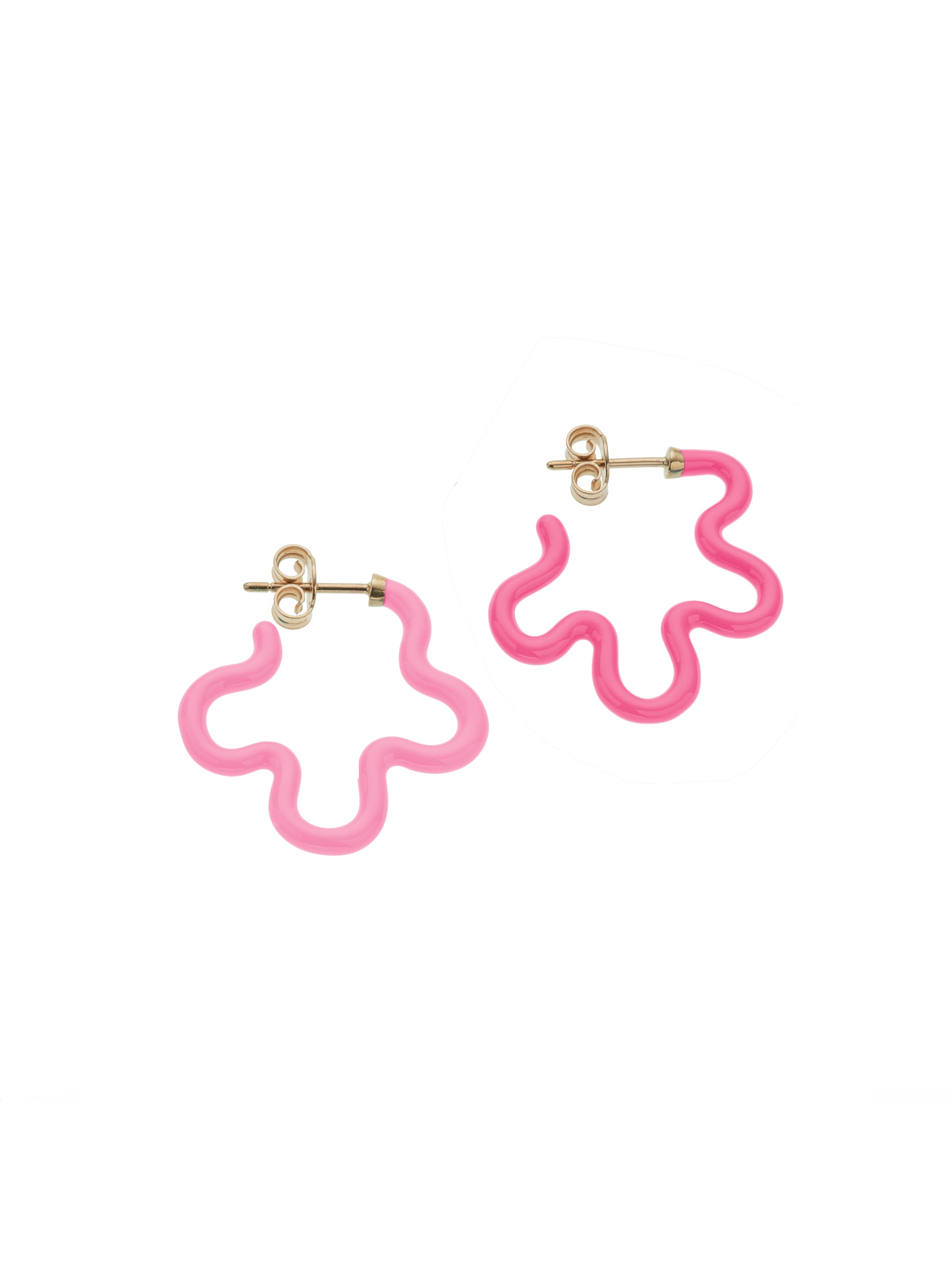 These 2-tone earrings feature a flower design in bubblegum pink and azalea.