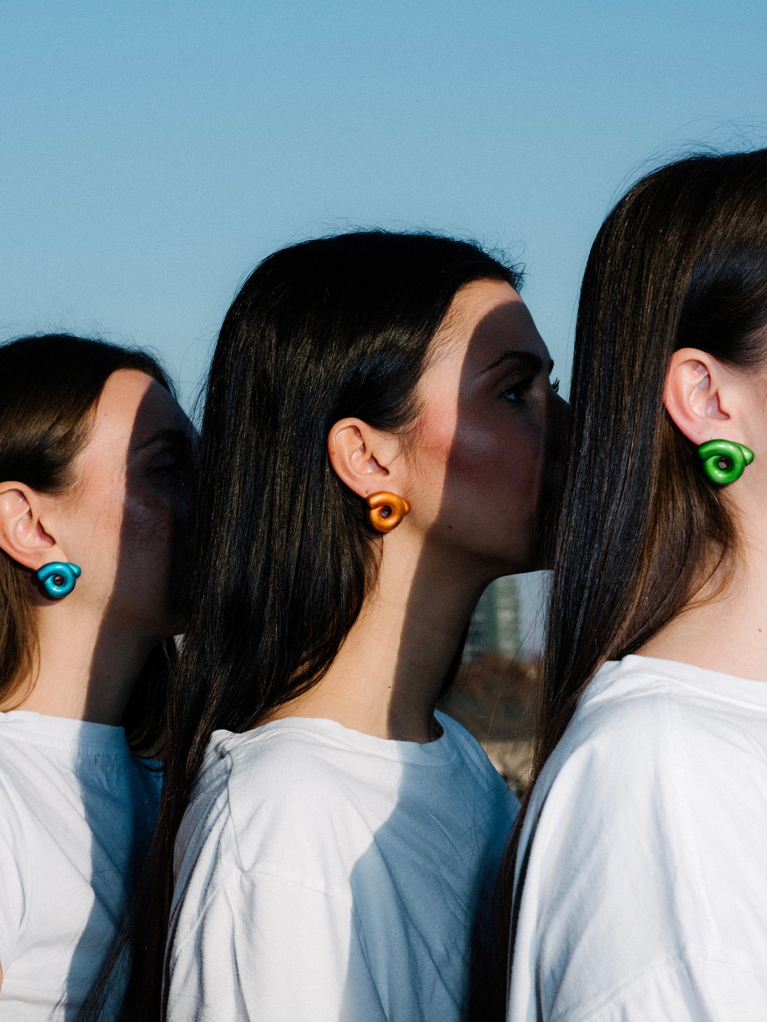 The Tarallo collection reinterprets Bea’s childhood nostalgia with larger-than-life, organic shapes that hug the body as gently and gracefully as her grandmother’s love embraced her and her family. Each piece features glossy, hand-painted enamel on a sterling silver base, creating sculptural jewelry that feels both modern and sentimental. This collection exemplifies Bea’s passion for soft, flowing forms and her commitment to vibrant, joyful color palettes.