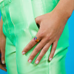 Full spectrum ring in yellow gold with yellow, orange, raspberry, bubblegum pink, purple, turquoise, hint of mint, and lime green enamel.