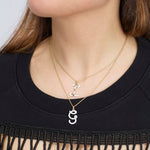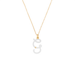 G Letter Necklace in 9kt yellow gold with white enamel.