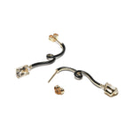 Oval vine pendant earrings in yellow gold, featuring black enamel and oval-cut rock crystal.