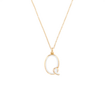 Q Letter Necklace in 9kt yellow gold with white enamel.