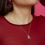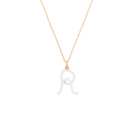 R Letter Necklace in 9kt yellow gold with white enamel.