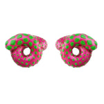 Tarallo earrings in silver, featuring hand-painted glossy flamingo pink enamel detailing inspired by the Parrot fish.