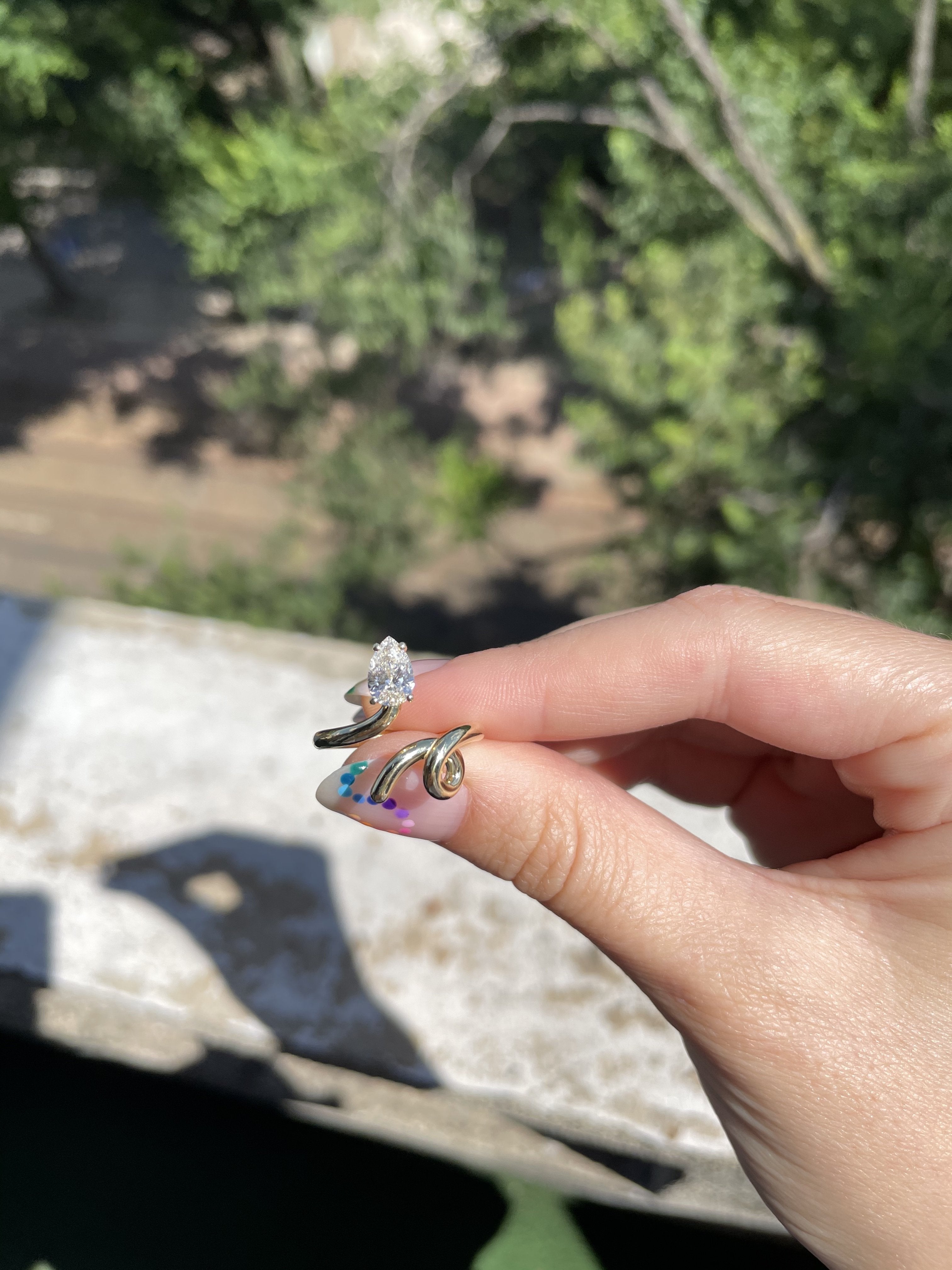 GOLD BABY VINE RING WITH PEAR CUT DIAMOND