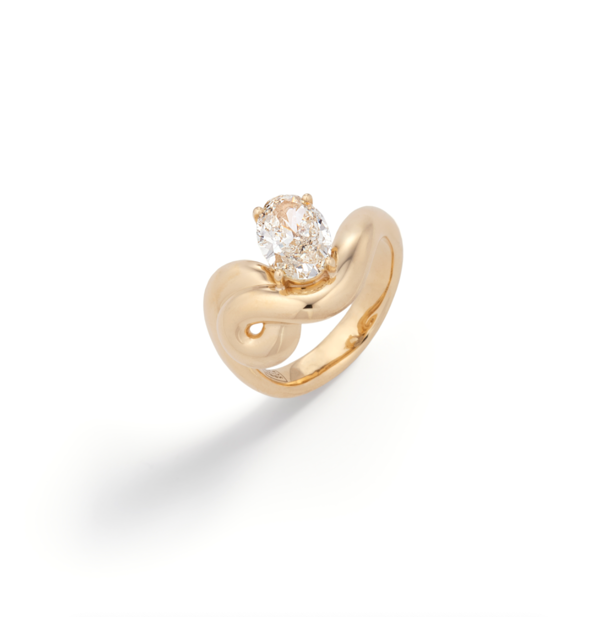 Chunky Vine Ring in 18kt Yellow Gold with Oval Cut White Diamond Lab Grown