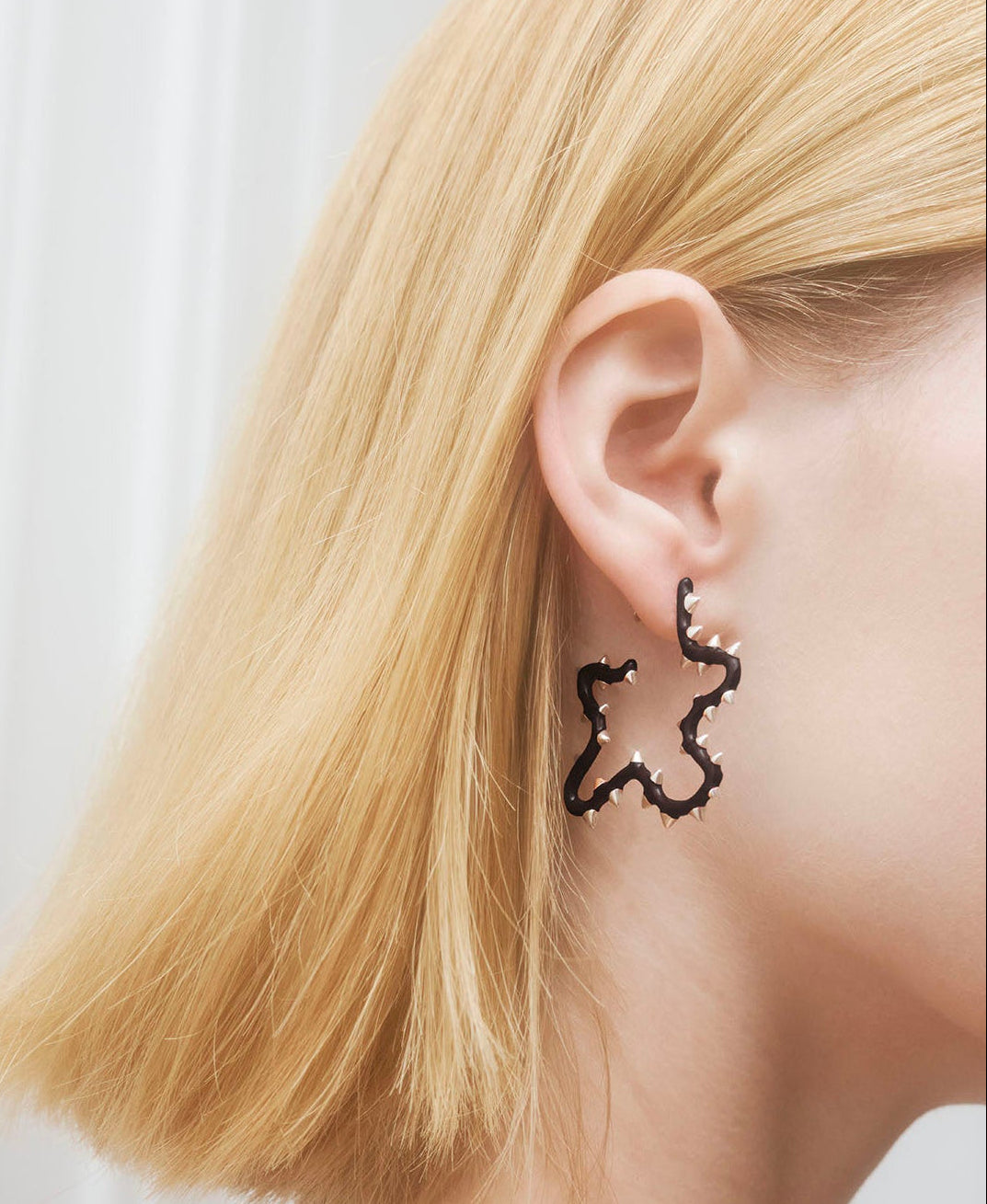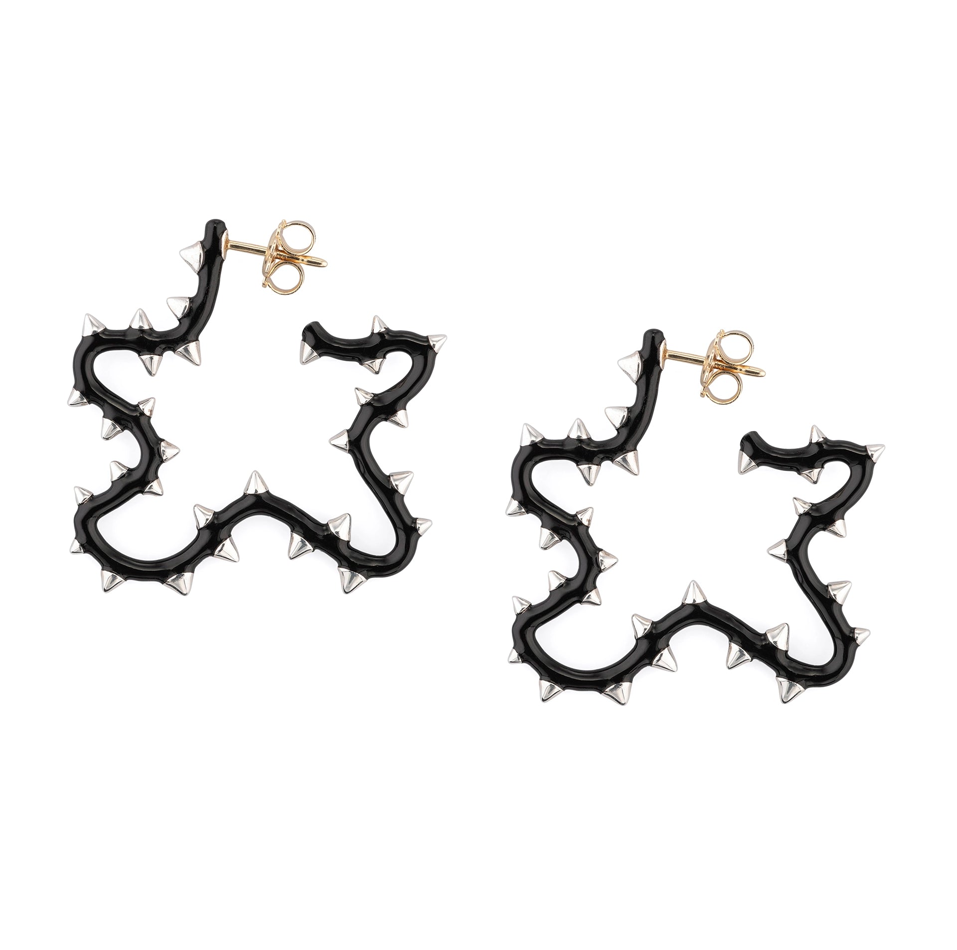 Studded Stella Earrings in 9kt Yellow Gold, Silver with Black enamel
