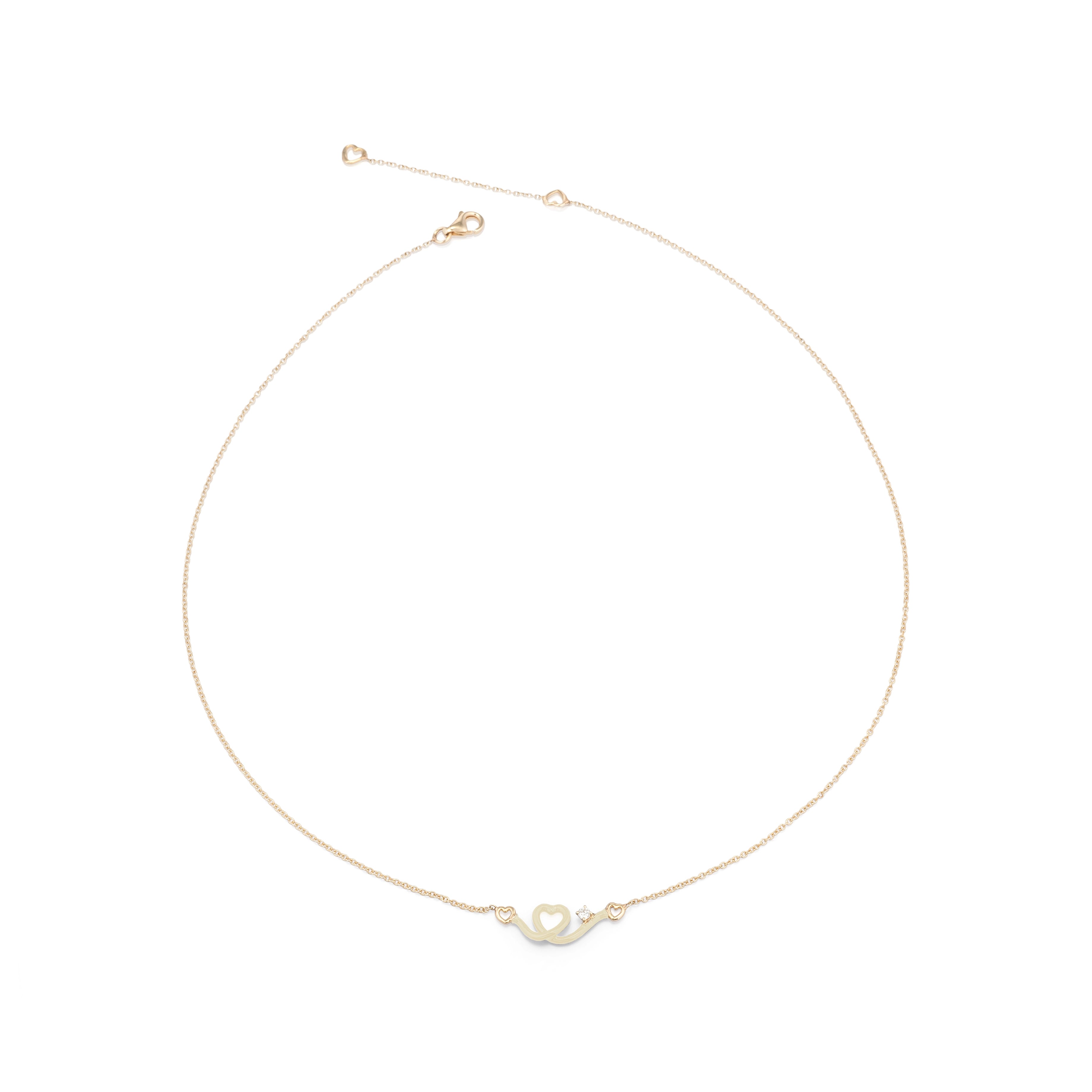 Gold necklace with a heart-shaped pendant, hand-painted with panna enamel and accented by a round-cut diamond.
