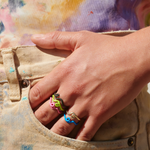 Wave stacking ring in yellow gold with yellow gold enamel.