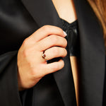 Multi frequency ring in yellow gold with blue navy, burgundy and cherry chocolate enamel.