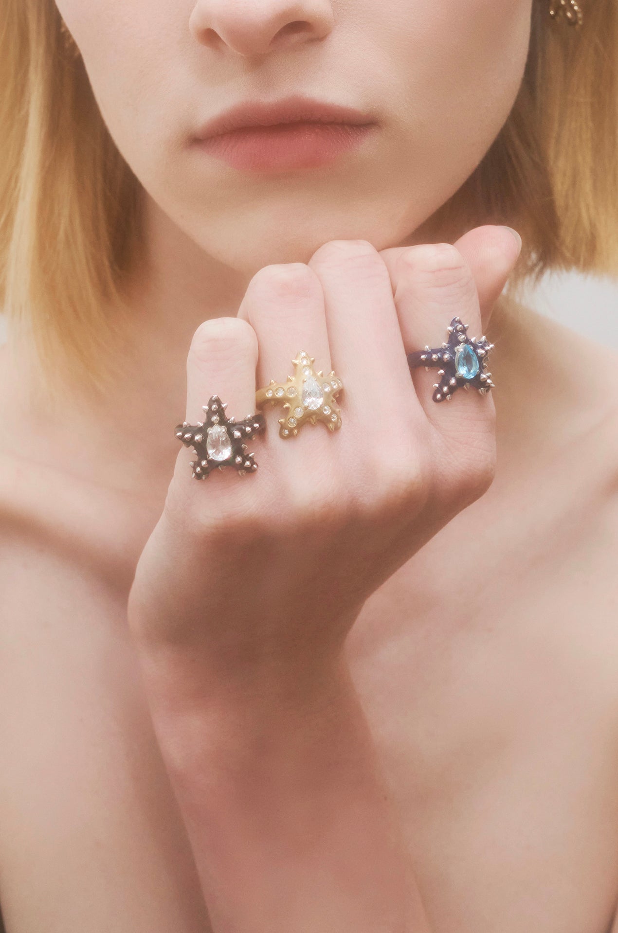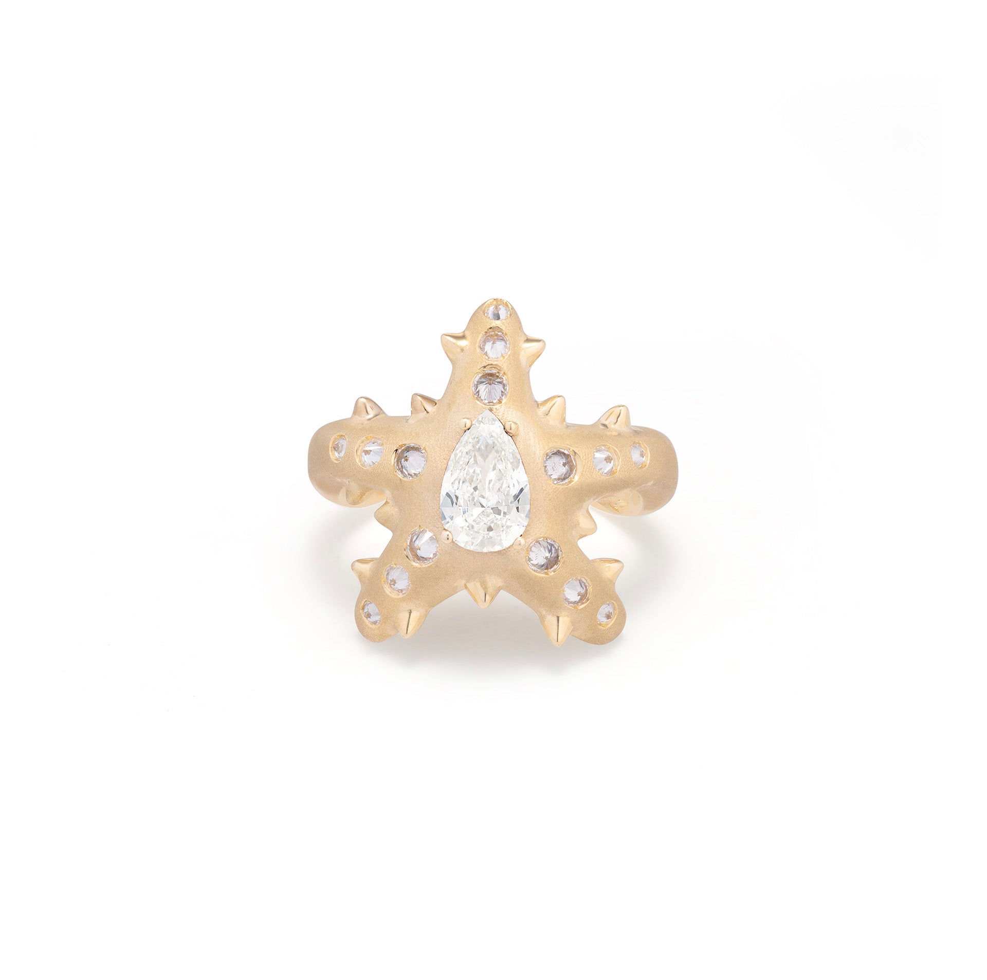 Studded Stella Ring in 18kt Yellow Gold with Pear Cut White Diamond and Brillian Cut Diamonds