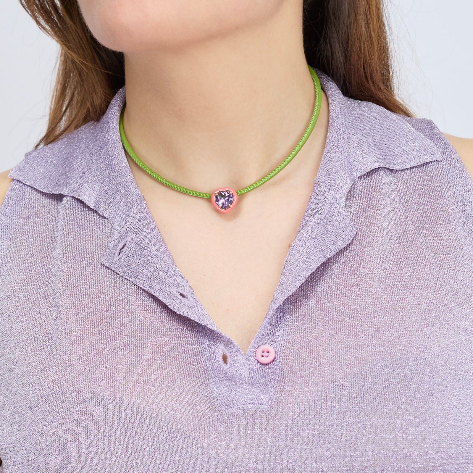 POP CHOKER ~ WITH HEART IN CANDY SETTING IN PINK