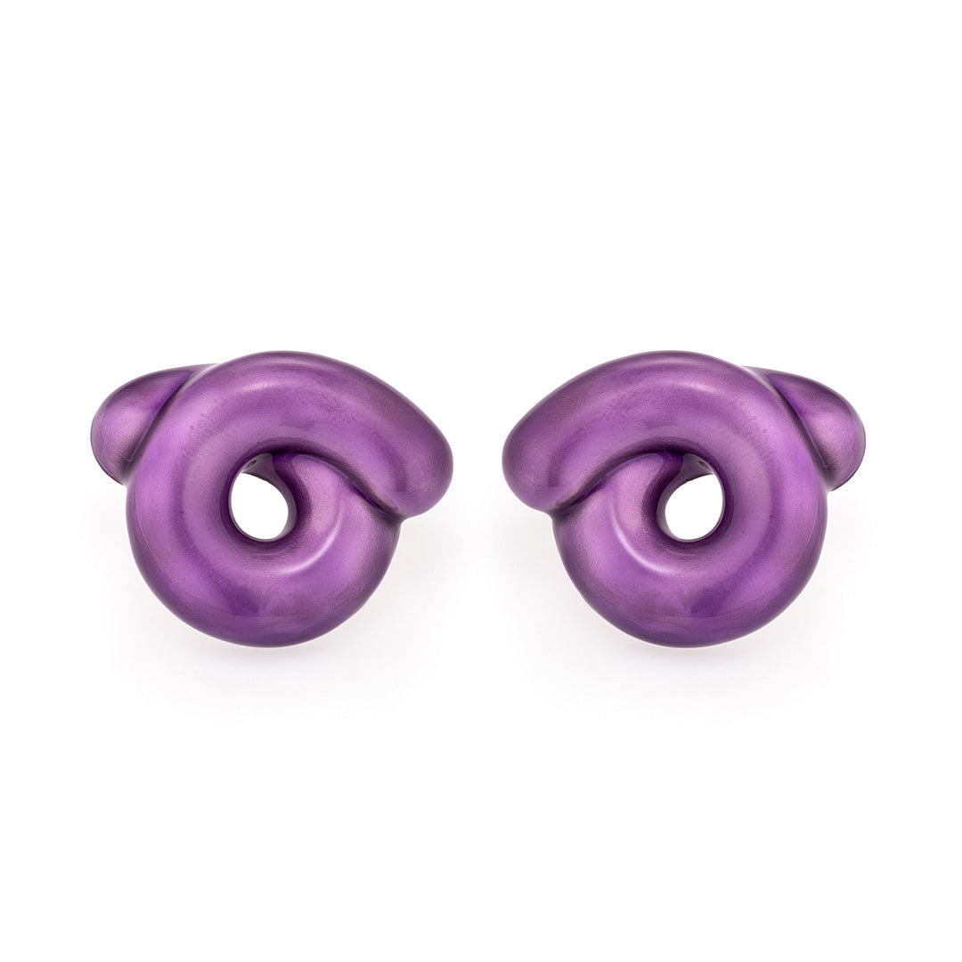 The Tarallo collection reinterprets Bea’s childhood nostalgia with larger-than-life, organic shapes that hug the body as gently and gracefully as her grandmother’s love embraced her and her family. Each piece features glossy, hand-painted enamel on a sterling silver base, creating sculptural jewelry that feels both modern and sentimental. This collection exemplifies Bea’s passion for soft, flowing forms and her commitment to vibrant, joyful color palettes.