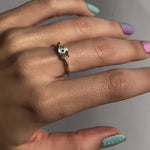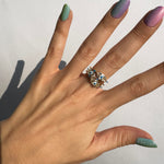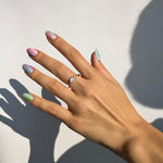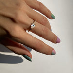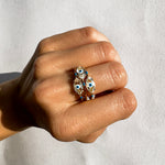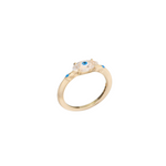 Fortuneye ring in gold features a marquise-cut rock crystal with a hand-painted eye directly onto the gemstone in turquoise, black, and white enamel.