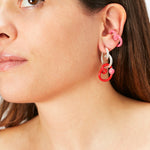 B loop ear cuff in silver with pink azalea enamel.