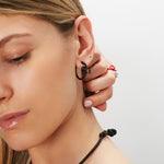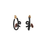 Baby vine hoop earrings in silver and gold, featuring black enamel and marquise-cut smoky quartz.