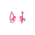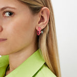 Baby vine hoop earrings in silver and gold, featuring azalea pink enamel and marquise-cut topaz.