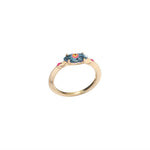 Fortuneye ring in gold features a marquise-cut rock topaz with a hand-painted eye directly onto the gemstone in orange, black, and white enamel.