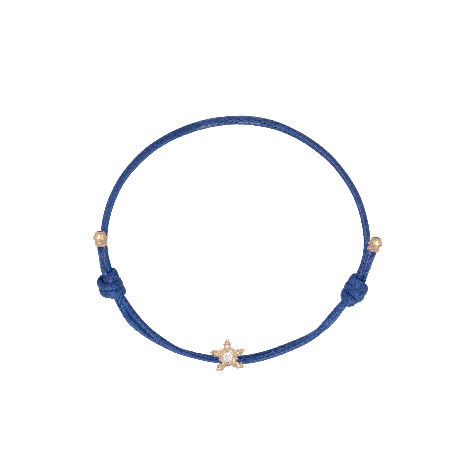 9kt yellow gold Starfish Charm bracelet with white brilliant cut diamond and Royal Blue adjustable cord.